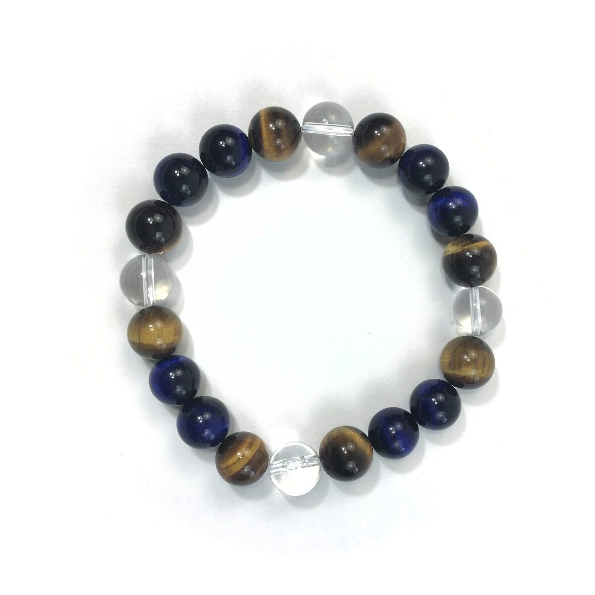 水晶×タイガーアイ×ブルータイガーアイ パワーストーン ブレスレット 10mm メンズ・レディース 男性・女性 数珠ブレス 開運 ☆