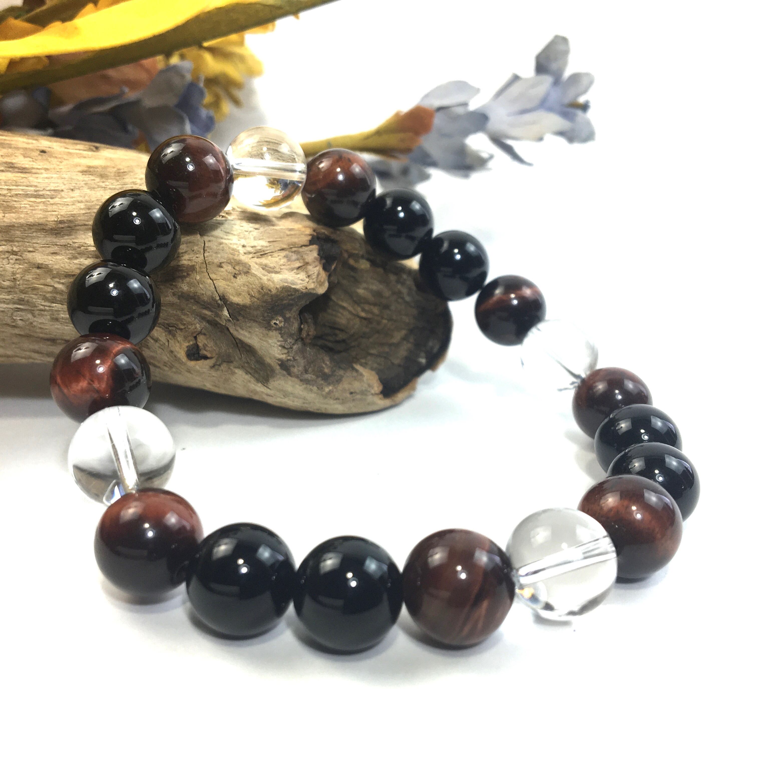 水晶×レッドタイガーアイ×オニキス パワーストーン ブレスレット 10mm 天然石 メンズ・レディース 男性・女性 数珠ブレス 開運 ☆