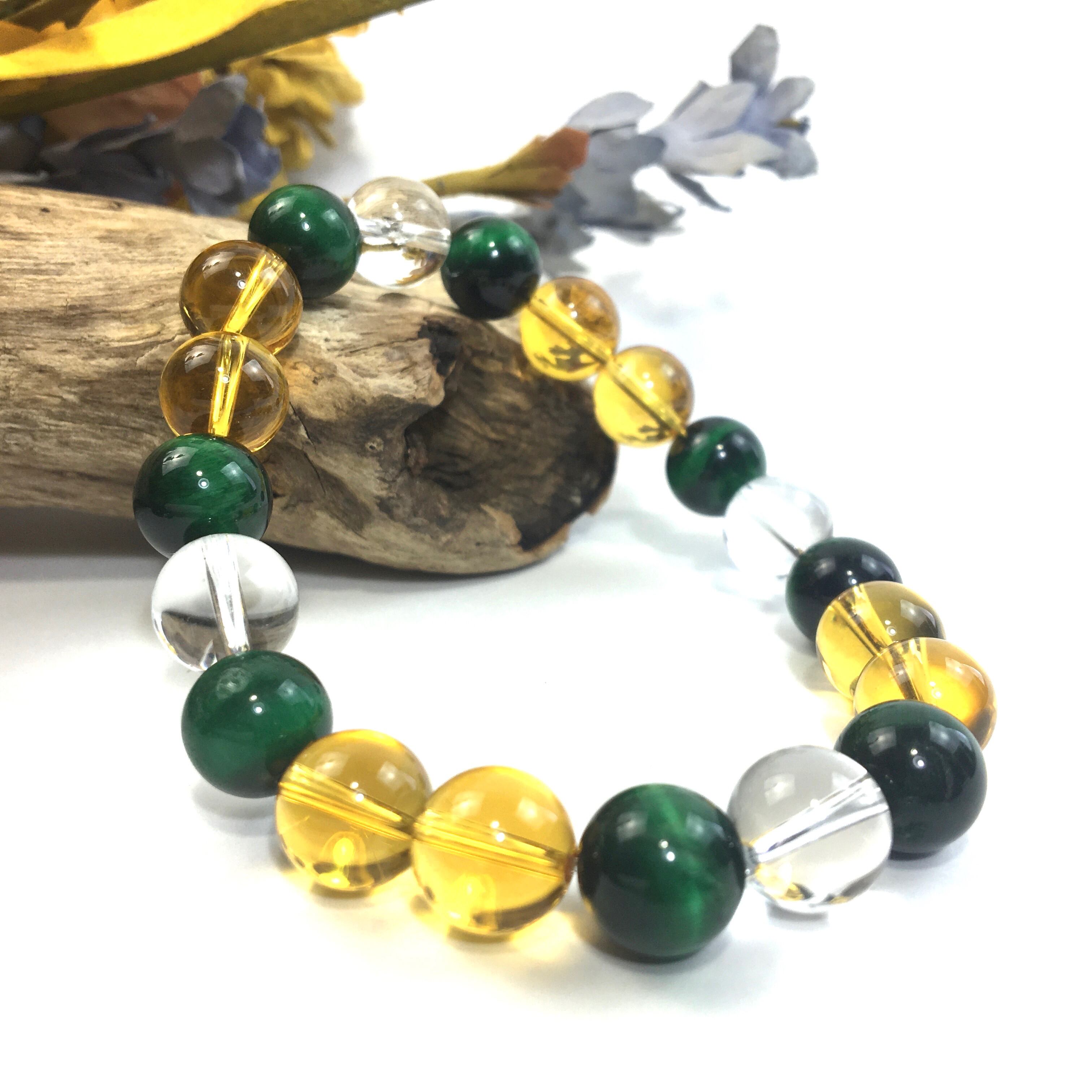 水晶×グリーンタイガーアイ×シトリン パワーストーン ブレスレット 10mm 天然石 メンズ・レディース 男性・女性 数珠ブレス 開運 ☆