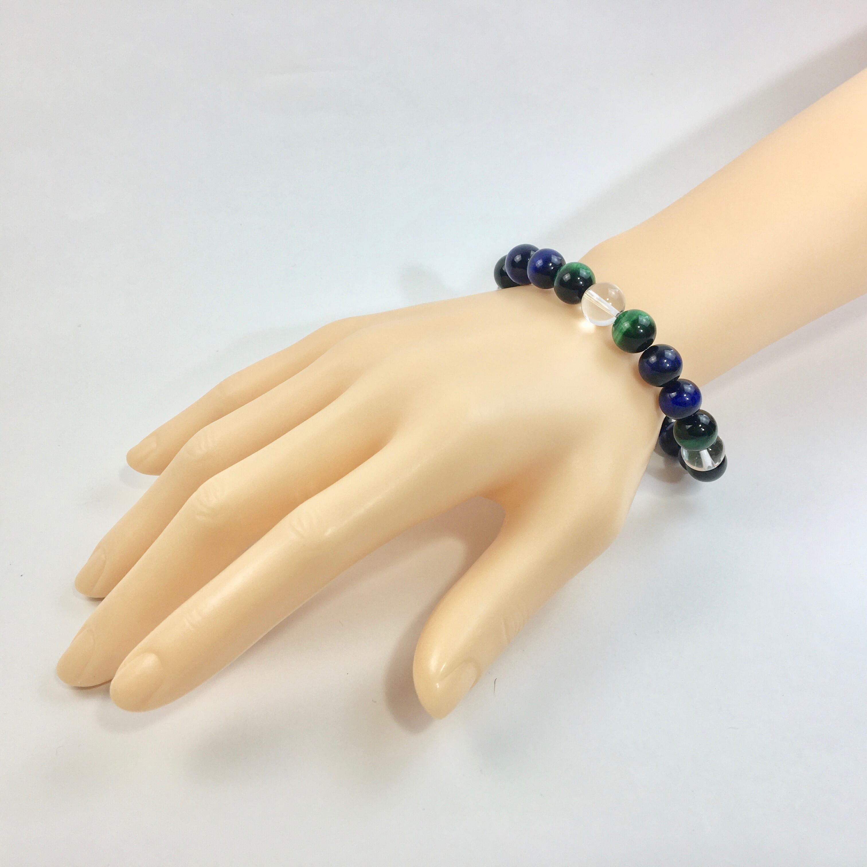 水晶×グリーンタイガーアイ×ブルータイガーアイ パワーストーン ブレスレット 10mm 天然石 メンズ・レディース 男性・女性 数珠ブレス 開運 ☆