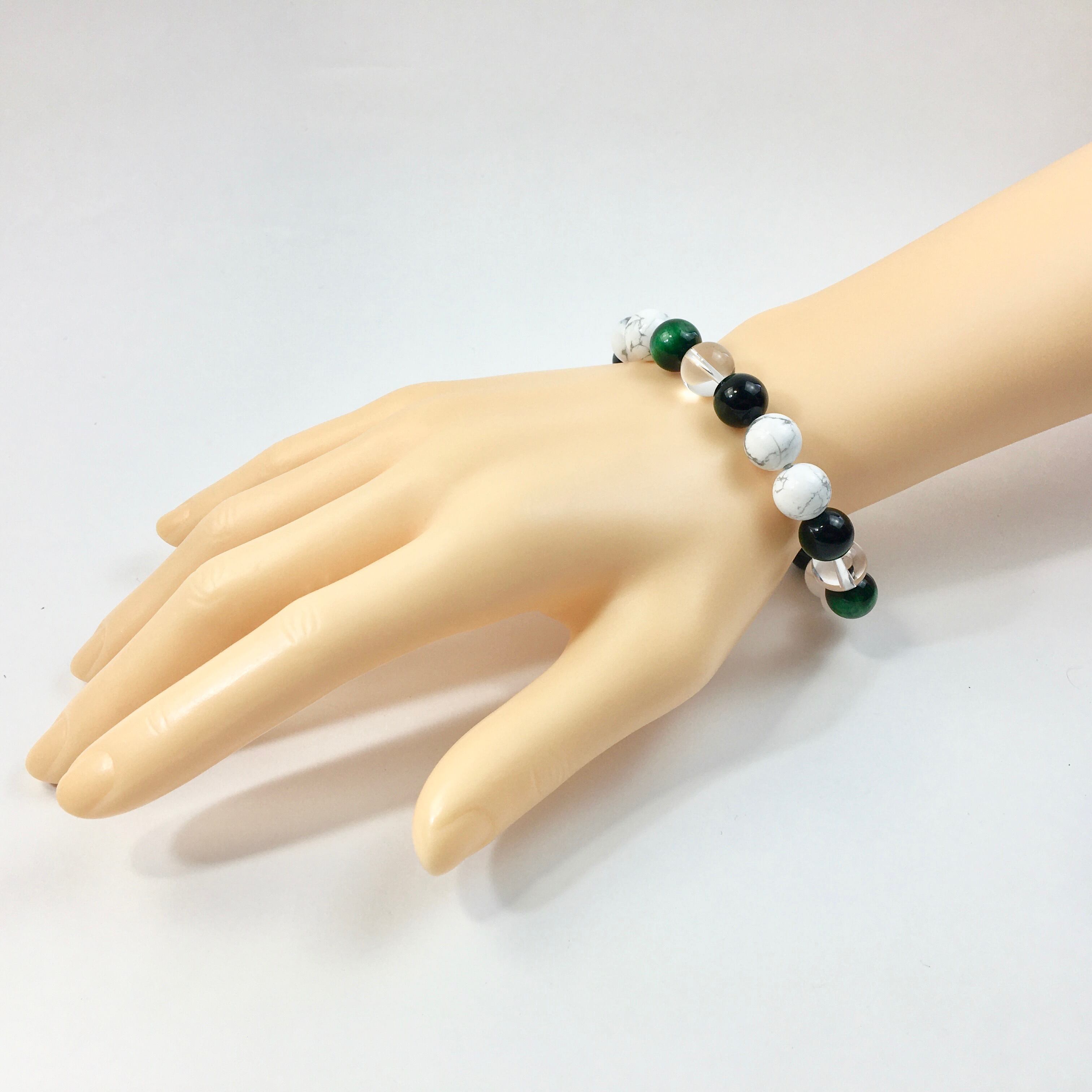 水晶×グリーンタイガーアイ×ハウライト パワーストーン ブレスレット 10mm 天然石 メンズ・レディース 男性・女性 数珠ブレス 開運 ☆