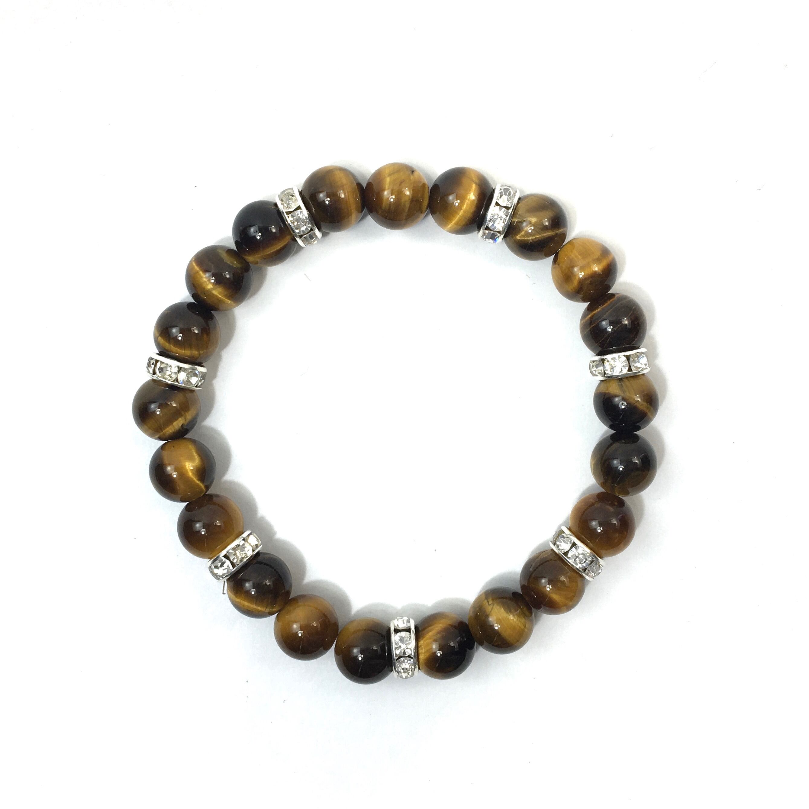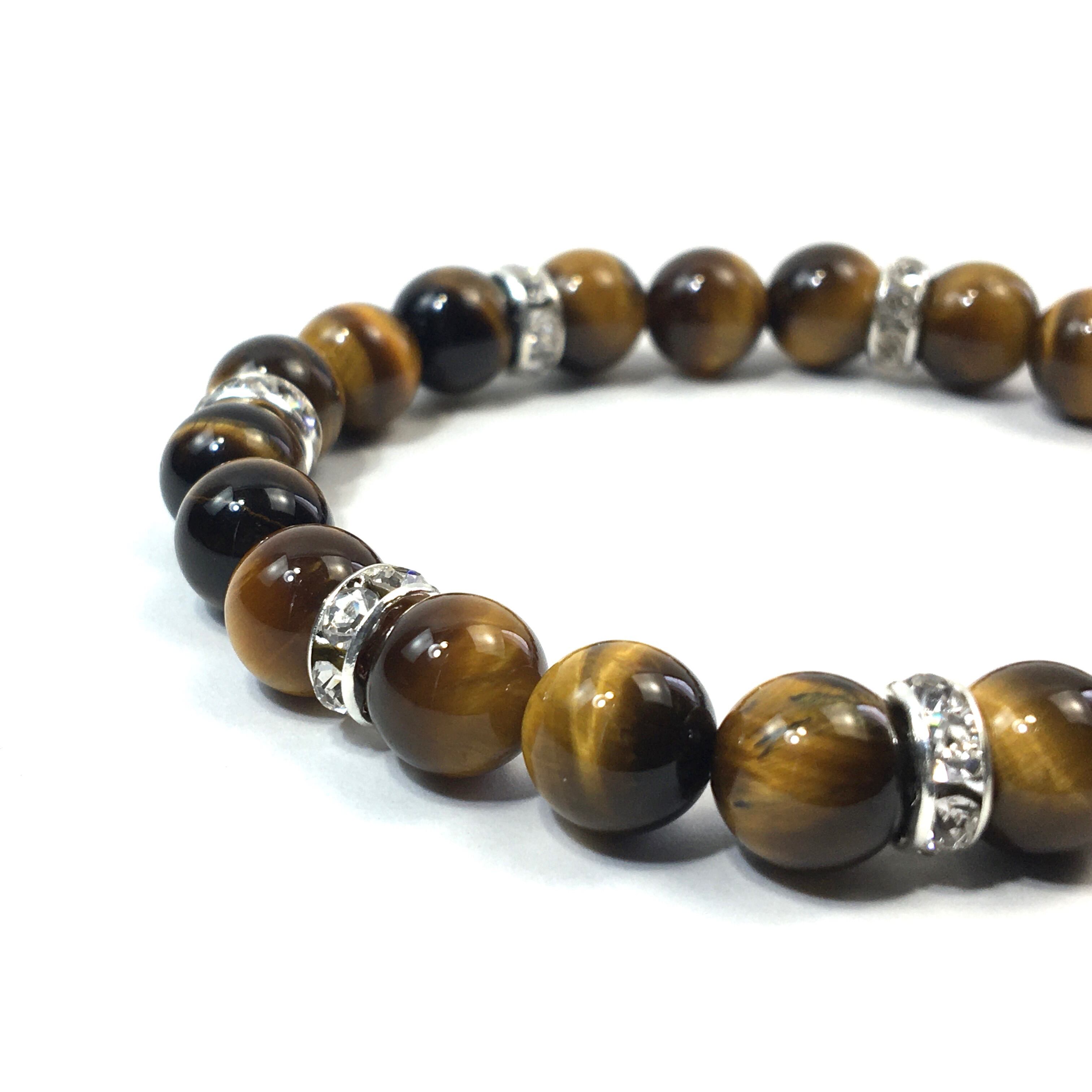 こちらは、8mm玉のタイガーアイを使ったパワーストーンブレスレットです。シンプルなデザインでどんなコーディネートにも合わせやすいデザインに仕上げています。サイズは内周約15cmです。気になる方は是非この機会にどうぞ。