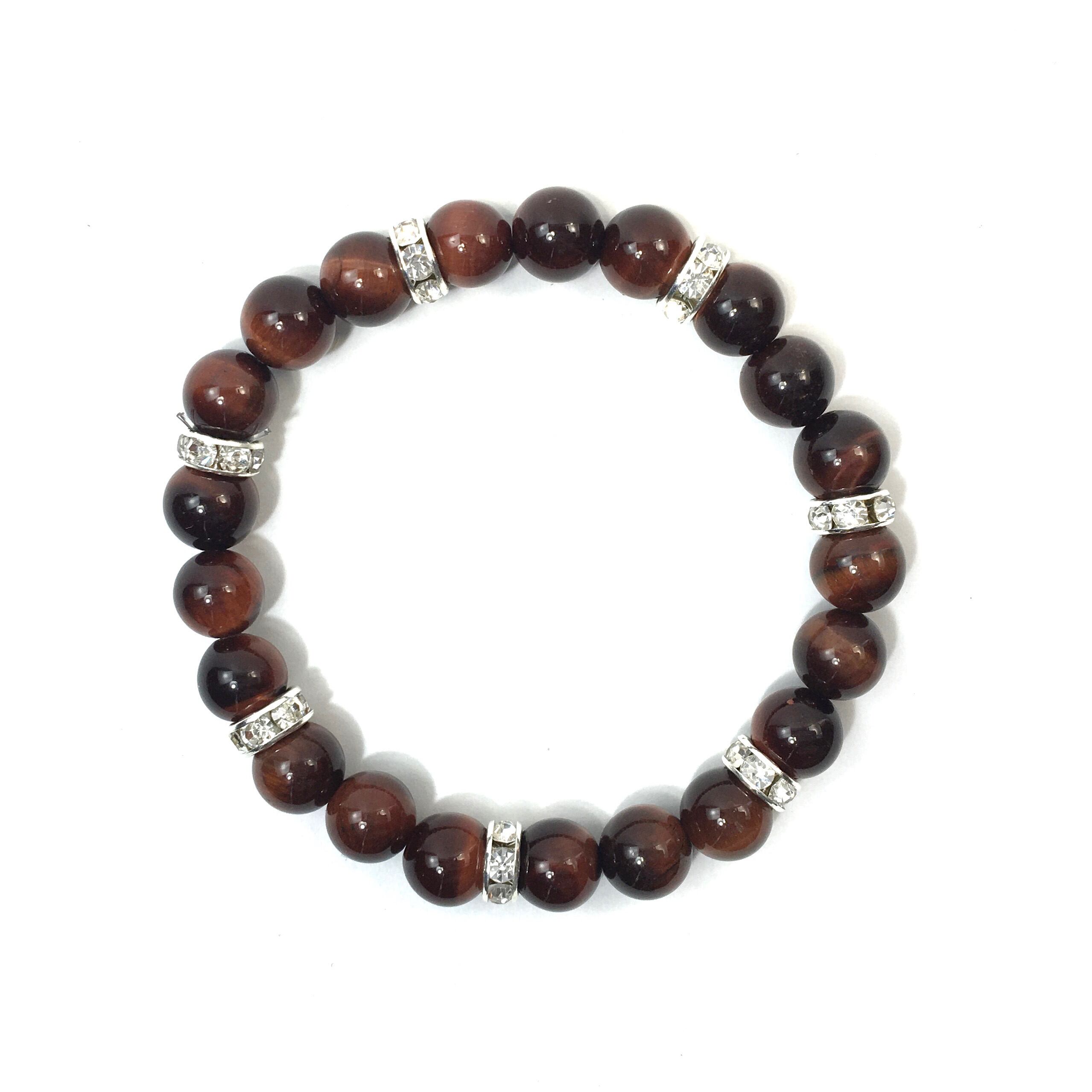 こちらは、8mm玉のレッドタイガーアイを使ったパワーストーンブレスレットです。シンプルなデザインでどんなコーディネートにも合わせやすいデザインに仕上げています。サイズは内周約15cmです。気になる方は是非この機会にどうぞ。
