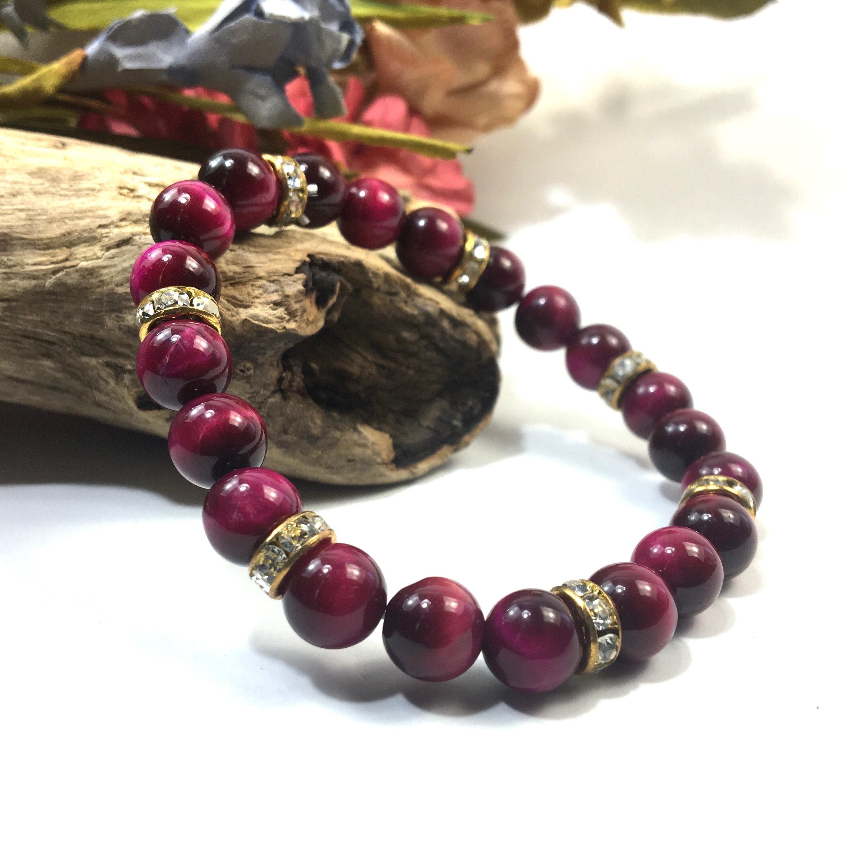 こちらは、8mm玉のピンクタイガーアイを使ったパワーストーンブレスレットです。シンプルなデザインでどんなコーディネートにも合わせやすいデザインに仕上げています。サイズは内周約15cmです。気になる方は是非この機会にどうぞ。
