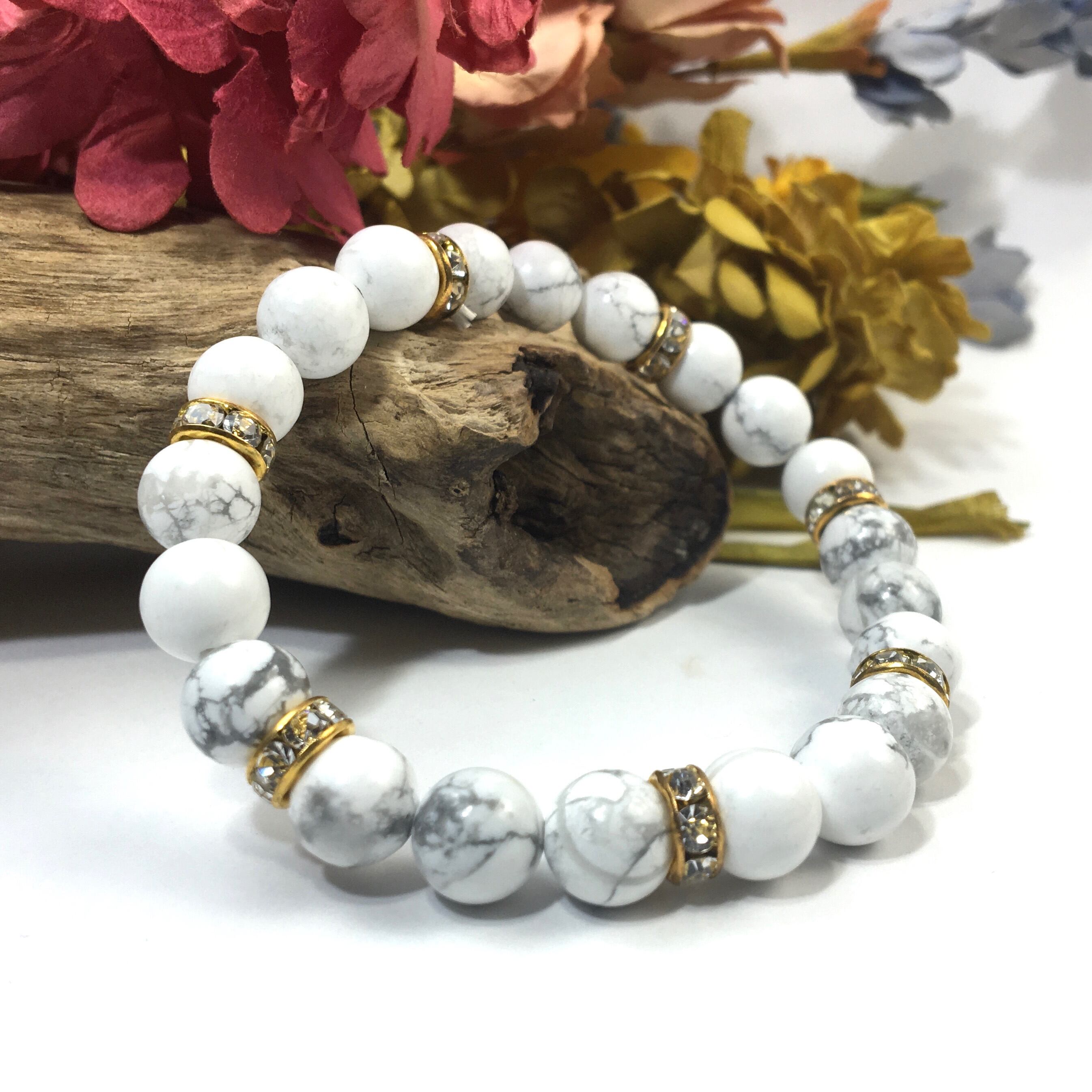 パワーストーン ブレスレット ハウライト 天然石ブレス (ゴールド)レディース 女性 数珠ブレス 開運 プレゼント ギフト
