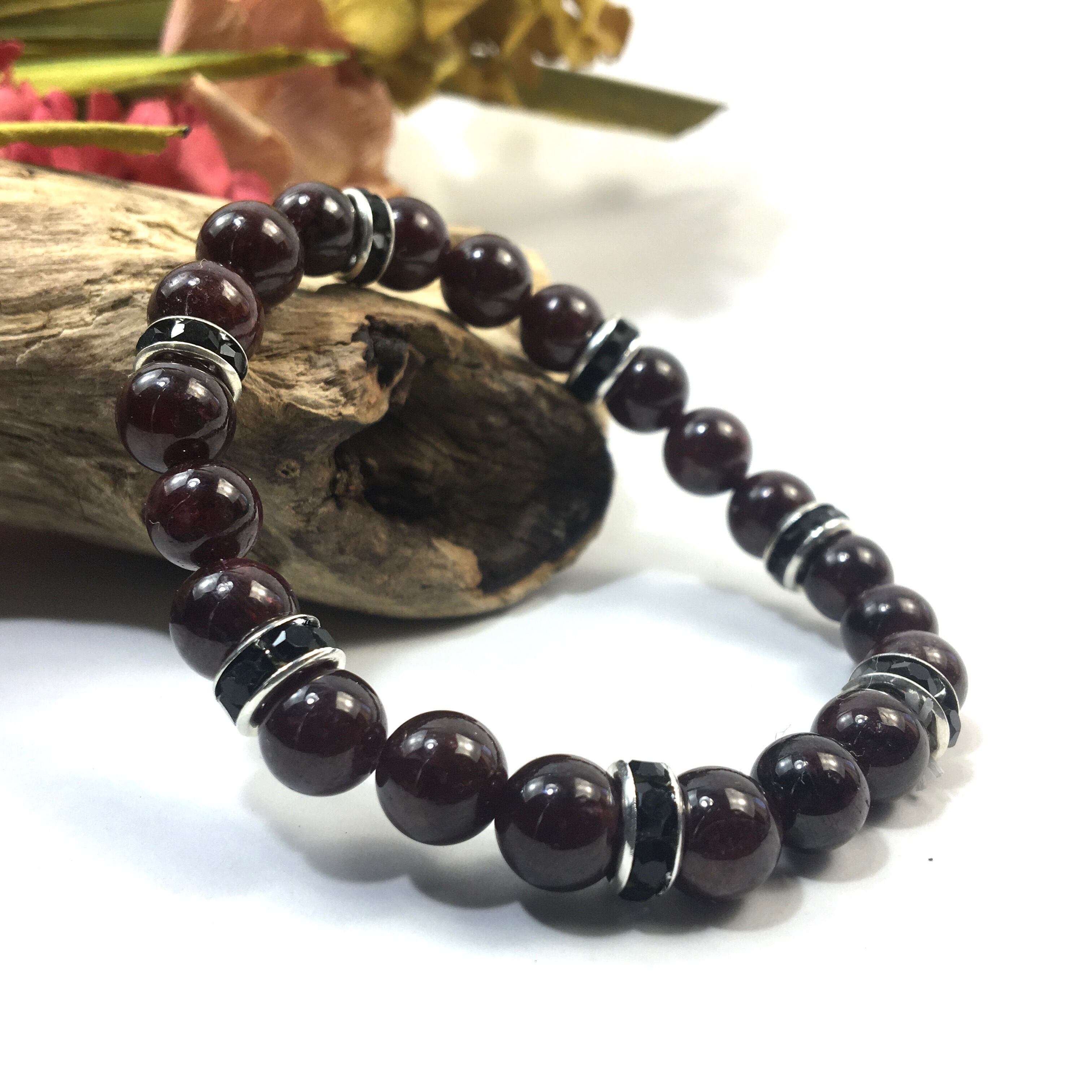 パワーストーン ブレスレット ガーネット 天然石ブレス (ブラック)レディース 女性 数珠ブレス 開運 プレゼント ギフト