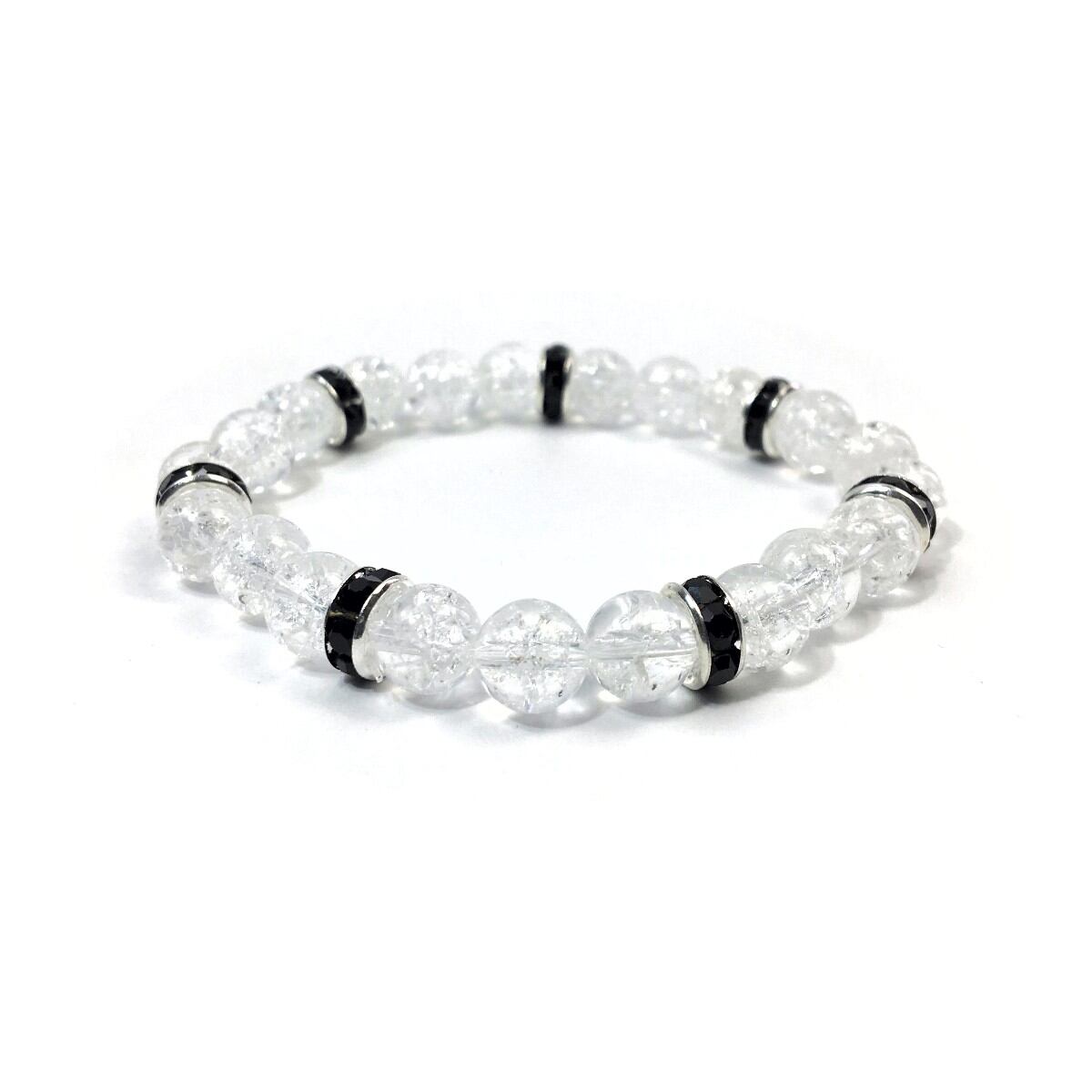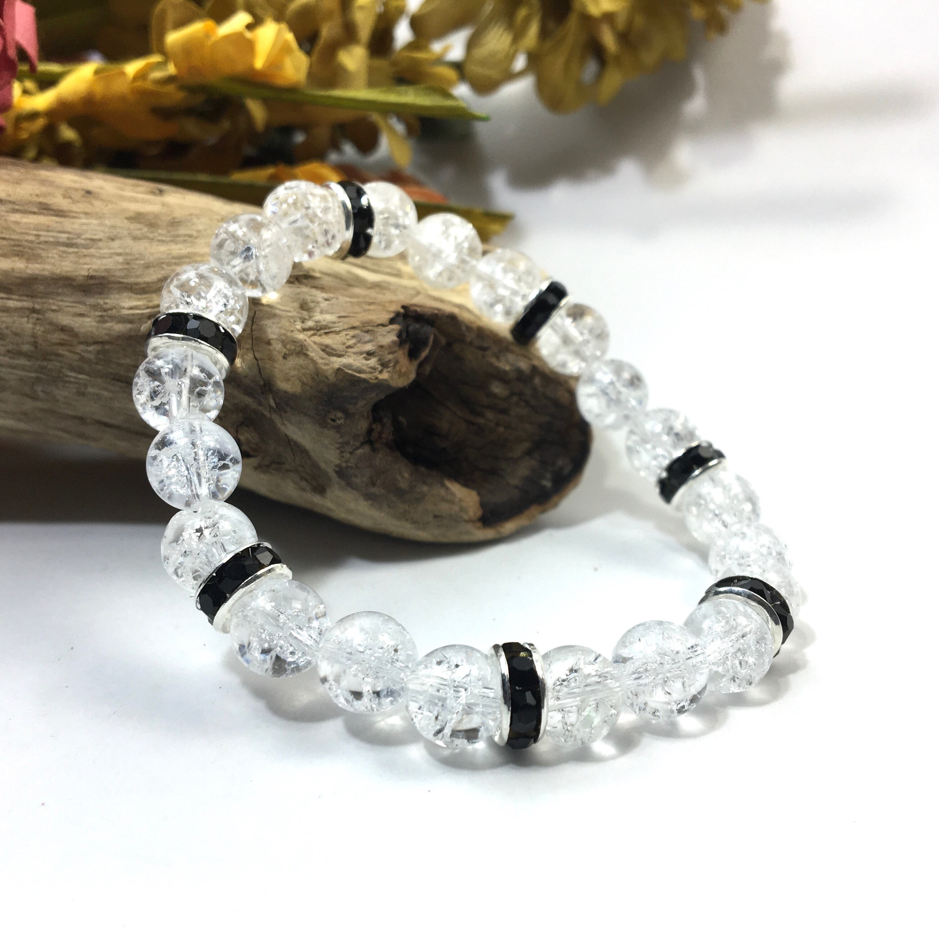 パワーストーン ブレスレット クラック水晶 天然石ブレス (ブラック)レディース 女性 数珠ブレス 開運 プレゼント ギフト