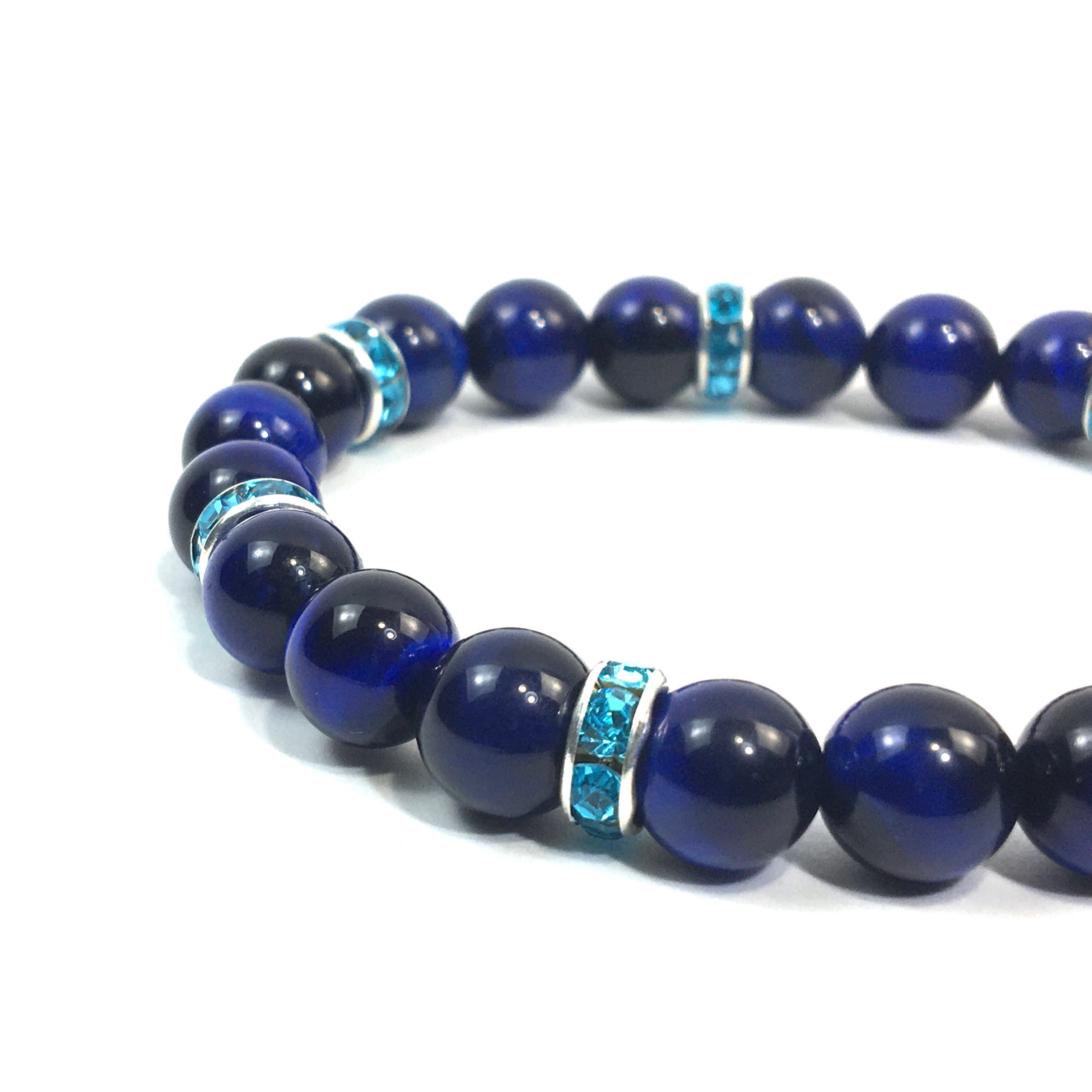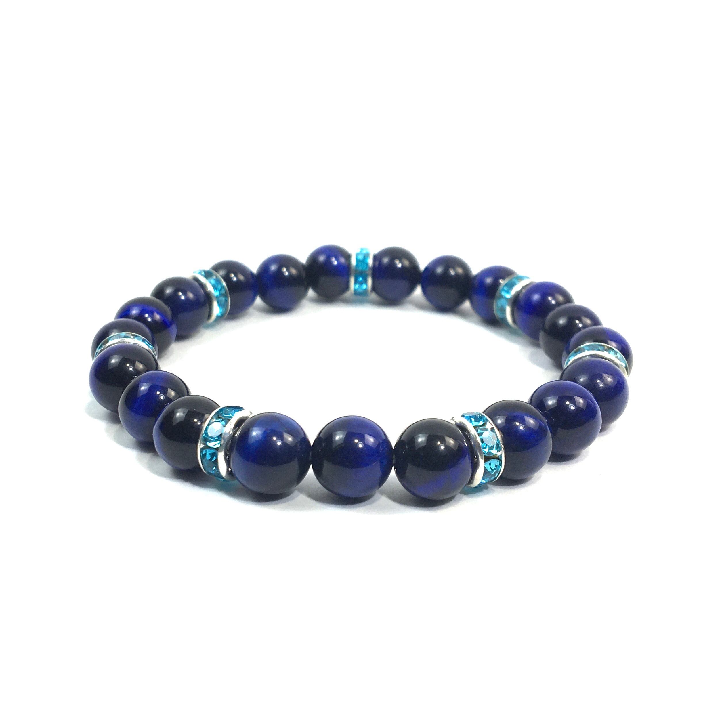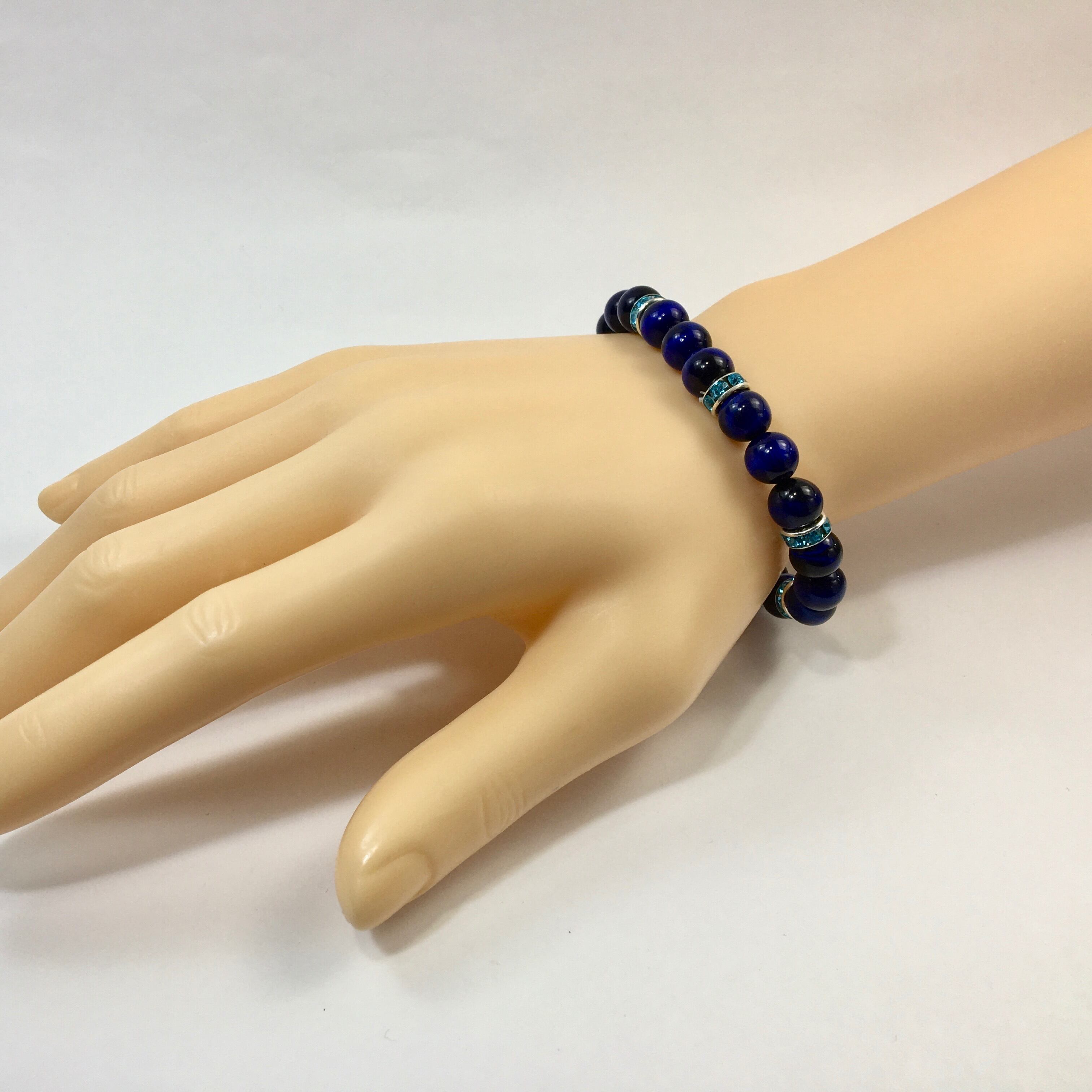 こちらは、8mm玉のブルータイガーアイを使ったパワーストーンブレスレットです。シンプルなデザインでどんなコーディネートにも合わせやすいデザインに仕上げています。サイズは内周約15cmです。気になる方は是非この機会にどうぞ。