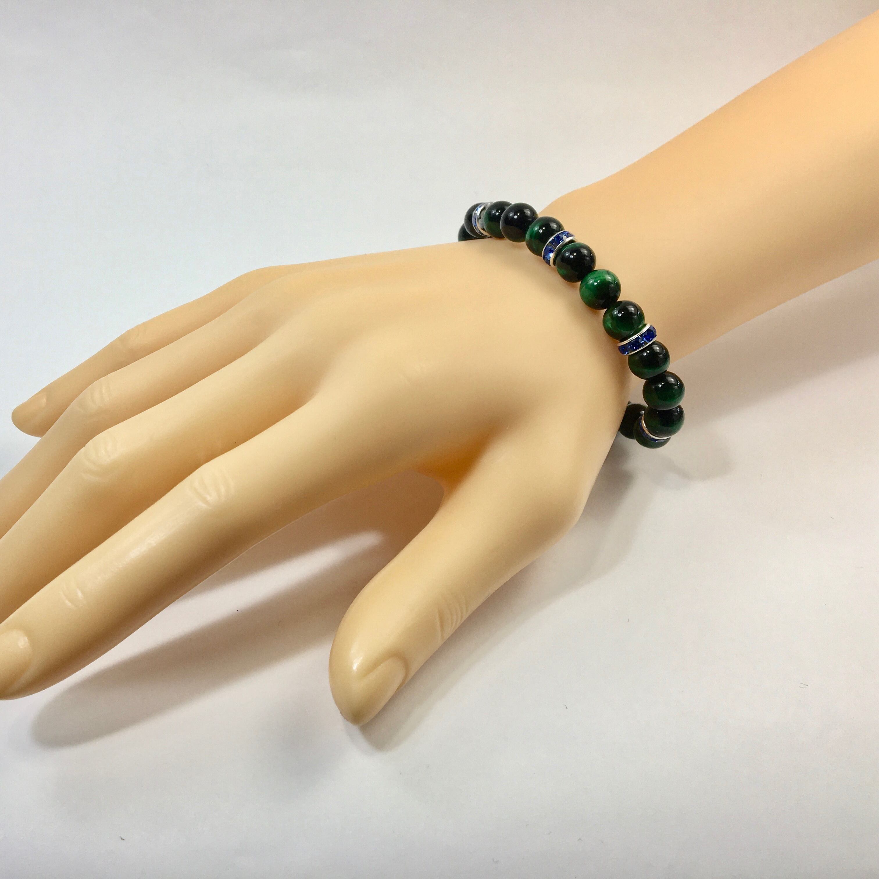 こちらは、8mm玉のグリーンタイガーアイを使ったパワーストーンブレスレットです。シンプルなデザインでどんなコーディネートにも合わせやすいデザインに仕上げています。サイズは内周約15cmです。気になる方は是非この機会にどうぞ。