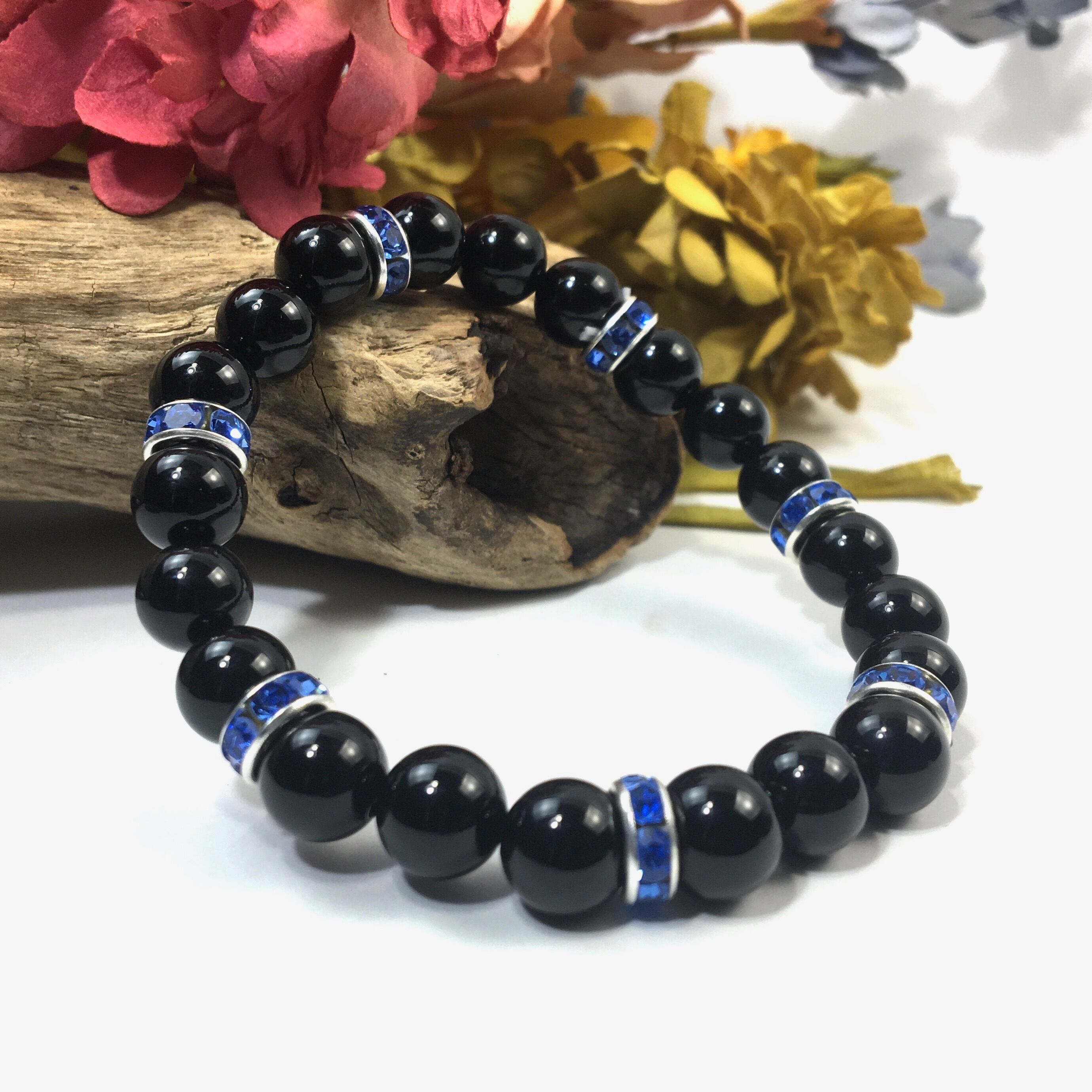 パワーストーン ブレスレット オニキス 天然石ブレス (ブルー)レディース 女性 数珠ブレス 開運 プレゼント ギフト
