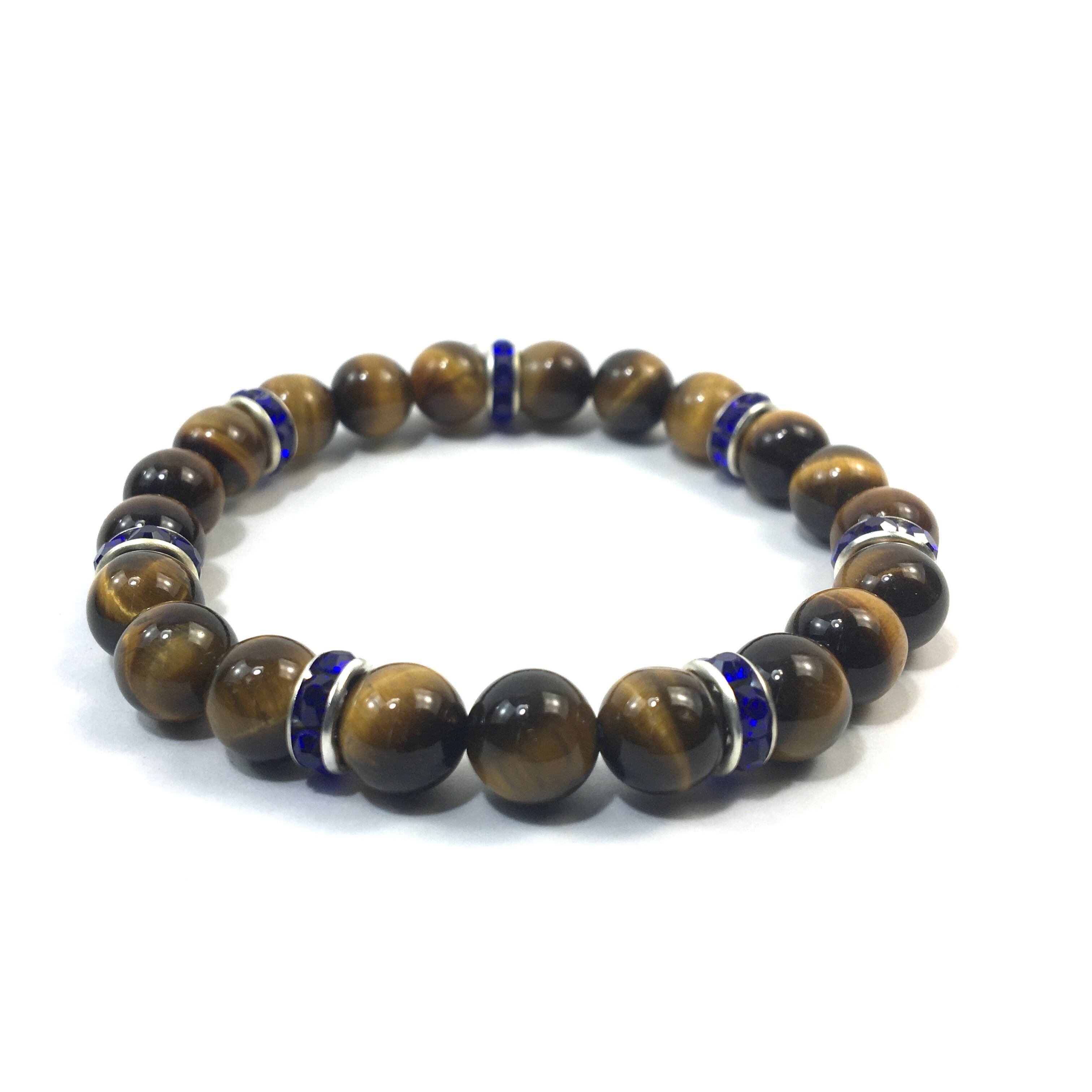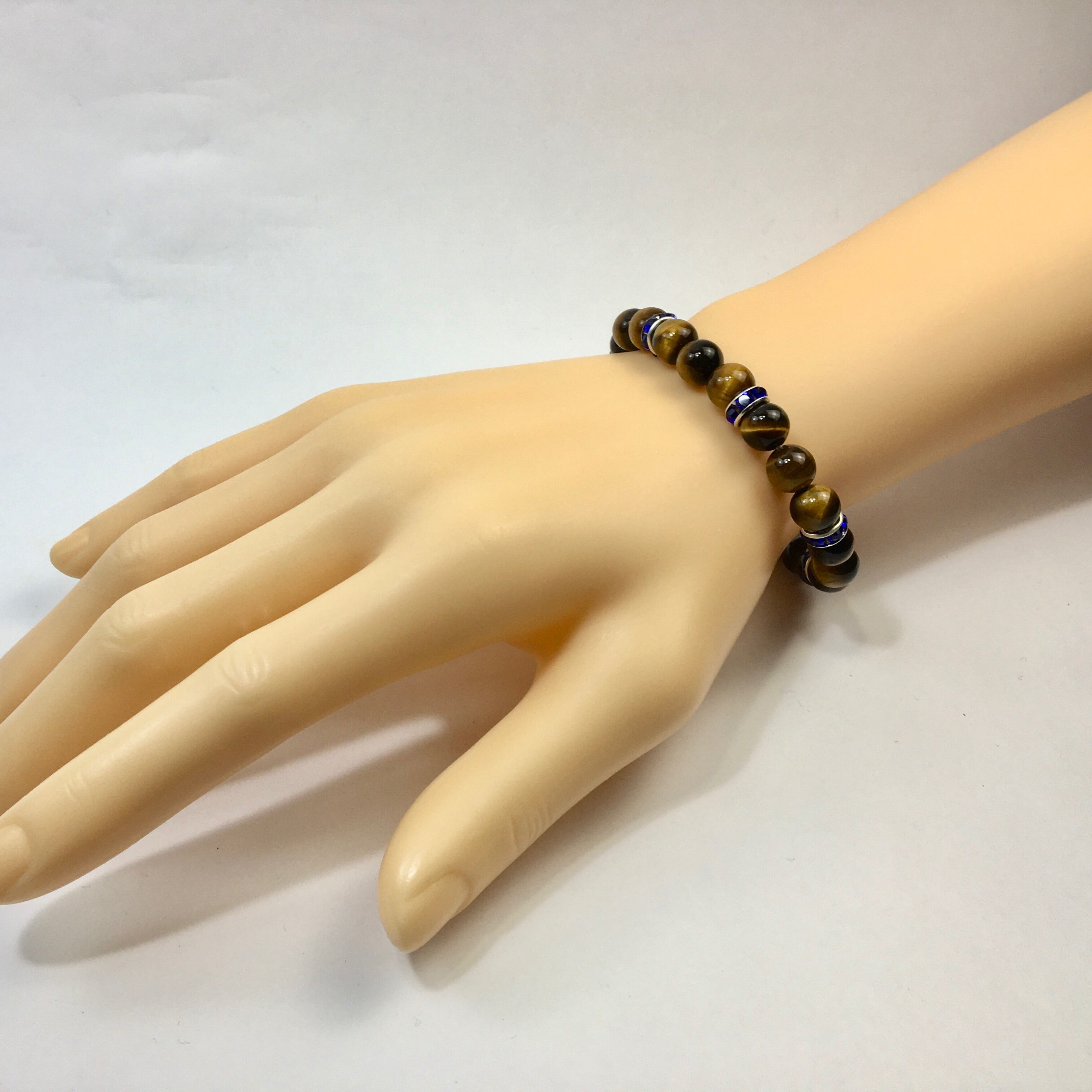 こちらは、8mm玉のタイガーアイを使ったパワーストーンブレスレットです。シンプルなデザインでどんなコーディネートにも合わせやすいデザインに仕上げています。サイズは内周約15cmです。気になる方は是非この機会にどうぞ。