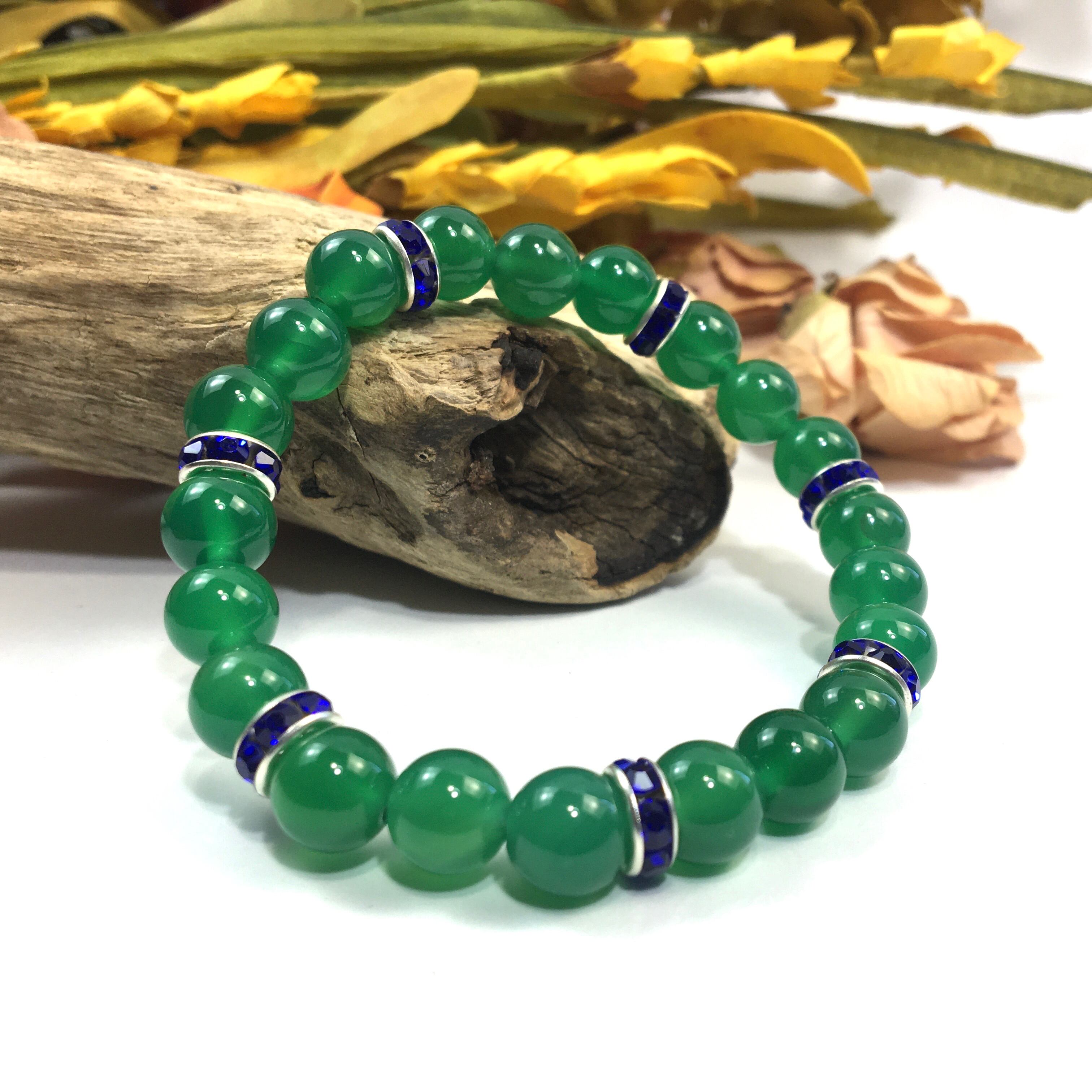 こちらは、8mm玉の緑瑪瑙を使ったパワーストーンブレスレットです。シンプルなデザインでどんなコーディネートにも合わせやすいデザインに仕上げています。サイズは内周約15cmです。気になる方は是非この機会にどうぞ。