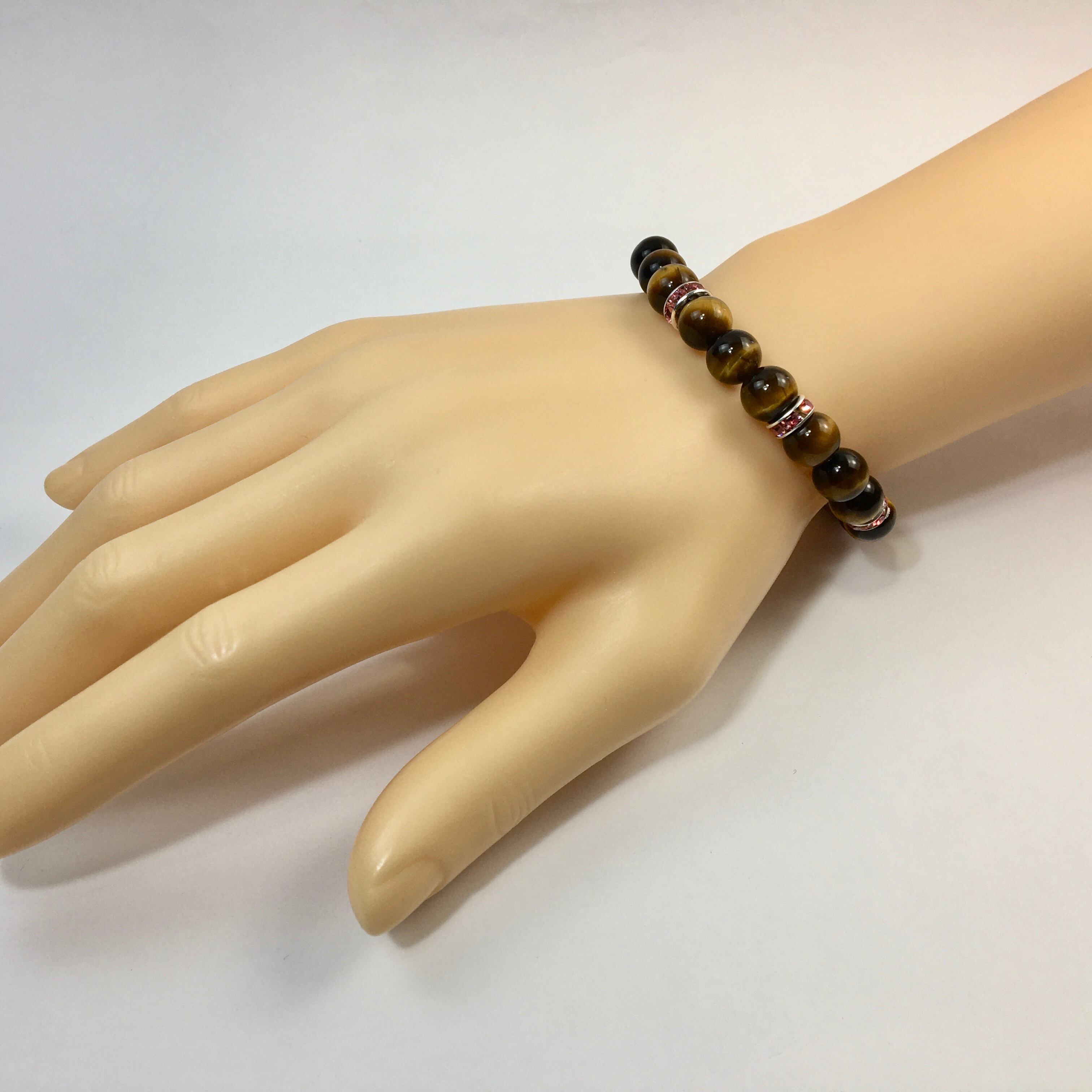 こちらは、8mm玉のタイガーアイを使ったパワーストーンブレスレットです。シンプルなデザインでどんなコーディネートにも合わせやすいデザインに仕上げています。サイズは内周約15cmです。気になる方は是非この機会にどうぞ。