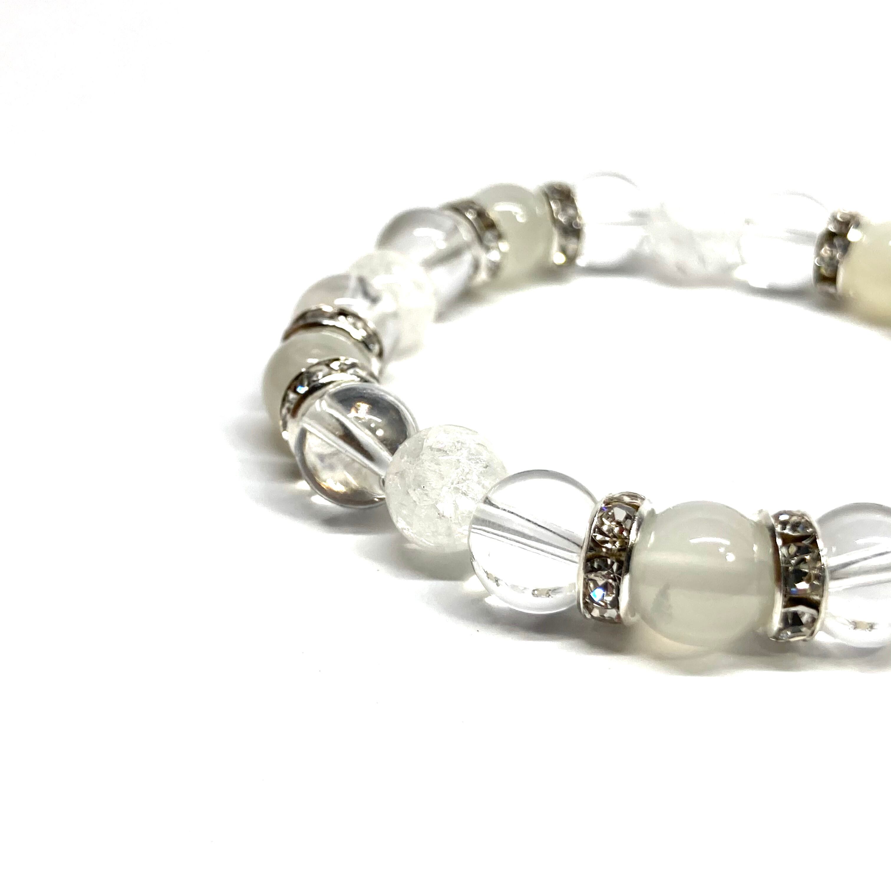 パワーストーン ブレスレット ムーンストーン&水晶&クラック水晶 天然石ブレスレット (シルバー)8mm レディース 女性 数珠ブレス 開運 プレゼント ギフト