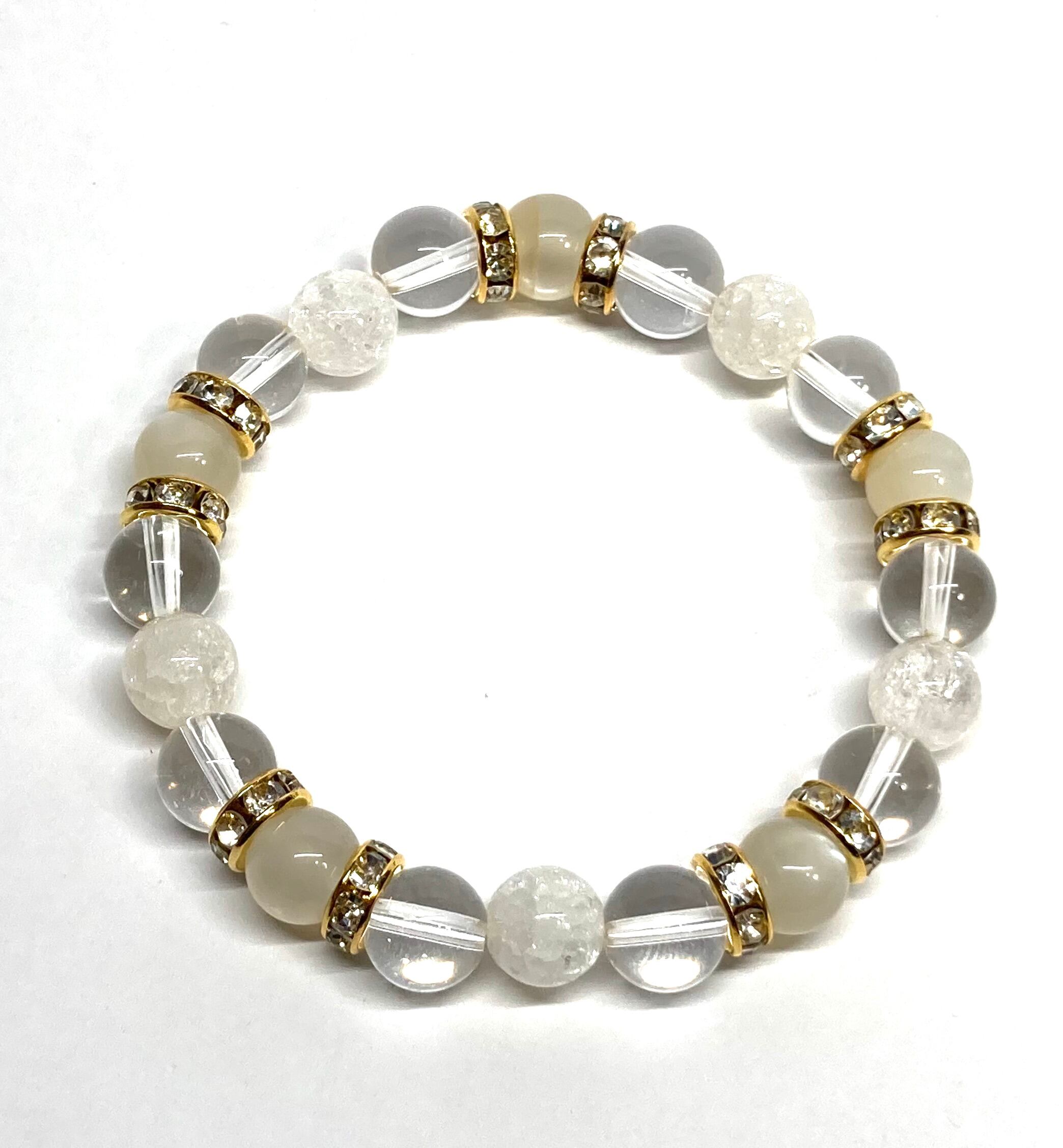パワーストーン ブレスレット ムーンストーン&水晶&クラック水晶 天然石ブレスレット (ゴールド)8mm レディース 女性 数珠ブレス 開運 プレゼント ギフト