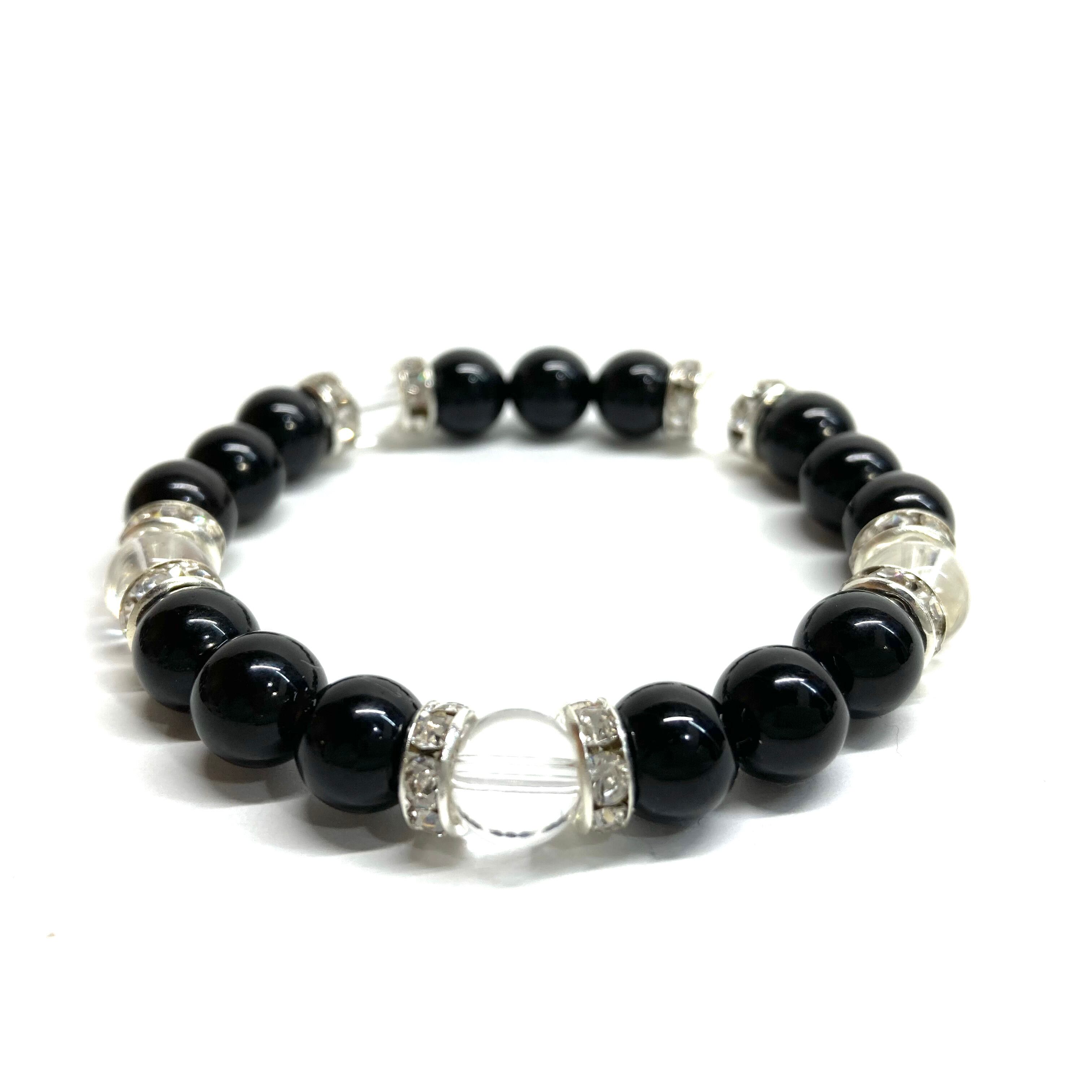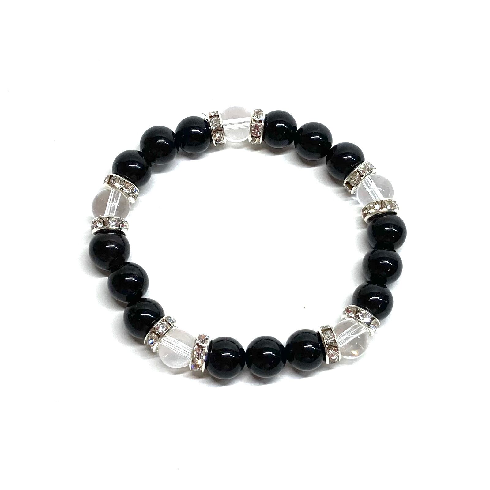 モリオン&水晶 パワーストーン ブレスレット 天然石 (シルバー)8mm レディース 女性 数珠ブレス 開運 プレゼント ギフト
