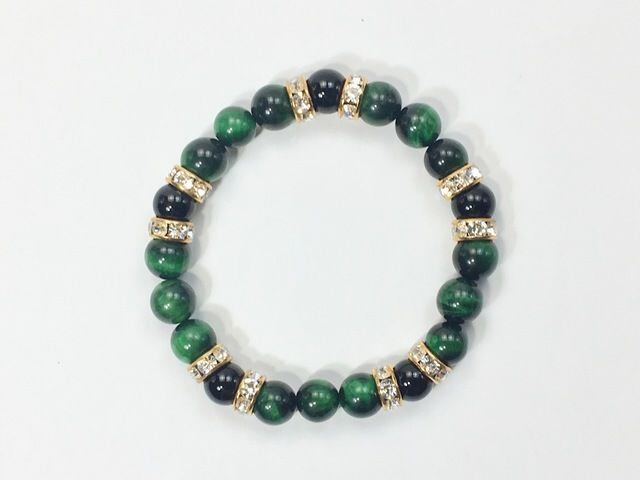 パワーストーン ブレスレット グリーンタイガーアイ&オニキス 8mm(ゴールド)レディース 女性 数珠ブレス 開運 プレゼント ギフト