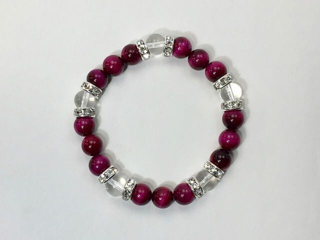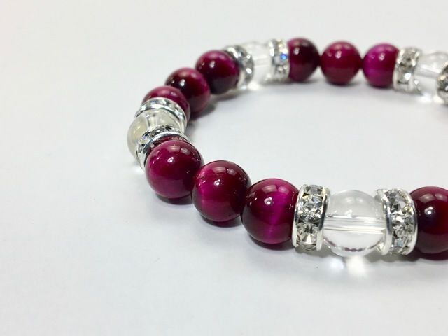 パワーストーン ブレスレット ピンクタイガーアイ&水晶 天然石 8mm(シルバー)レディース 女性 数珠ブレス 開運 プレゼント ギフト