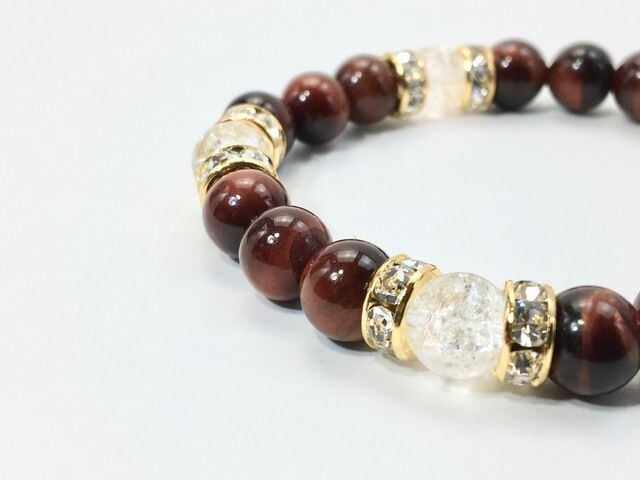 パワーストーン ブレスレット レッドタイガーアイ&クラック水晶 8mm(ゴールド)レディース 女性 数珠ブレス 開運 プレゼント ギフト