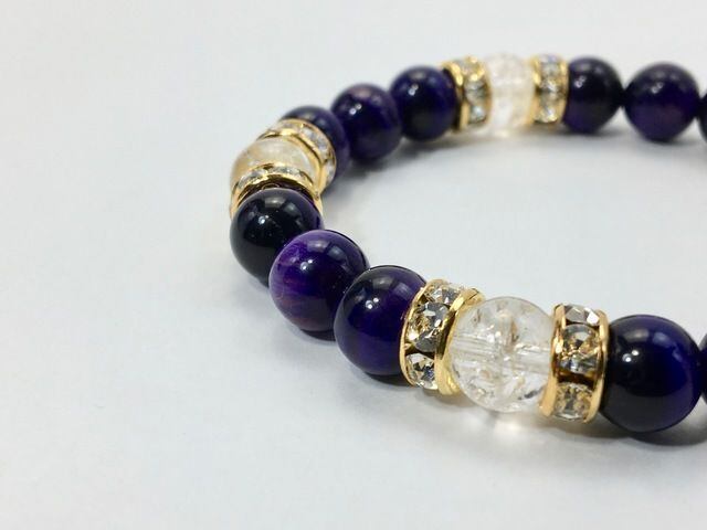 パワーストーン ブレスレット パープルタイガーアイ&クラック水晶 8mm(ゴールド)レディース 女性 数珠ブレス 開運 プレゼント ギフト