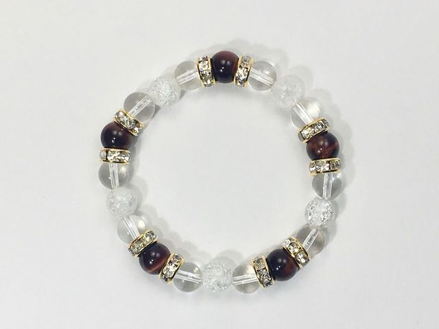 パワーストーン ブレスレット レッドタイガーアイ&水晶&クラック水晶 (ゴールド)レディース 女性 数珠ブレス 開運 プレゼント ギフト