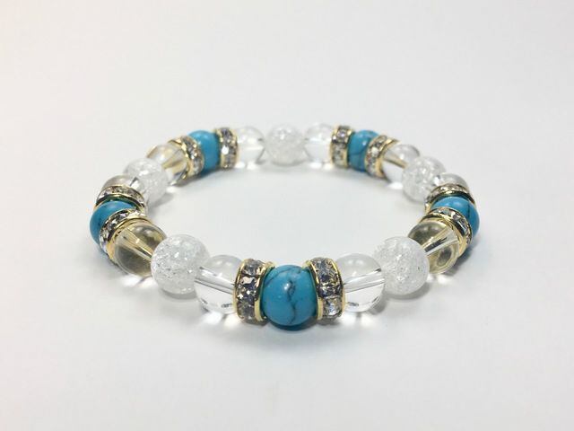 パワーストーン ブレスレット ターコイズ&水晶&クラック水晶 (ゴールド)レディース 女性 数珠ブレス 開運 プレゼント ギフト