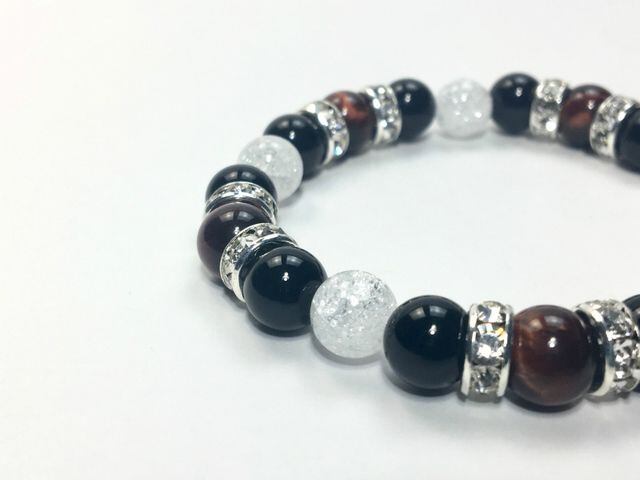 パワーストーン ブレスレット レッドタイガーアイ&オニキス&クラック水晶 (シルバー)レディース 女性 数珠ブレス 開運 プレゼント ギフト