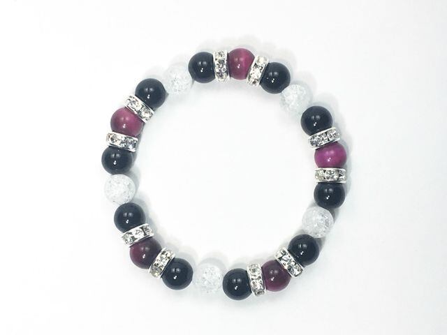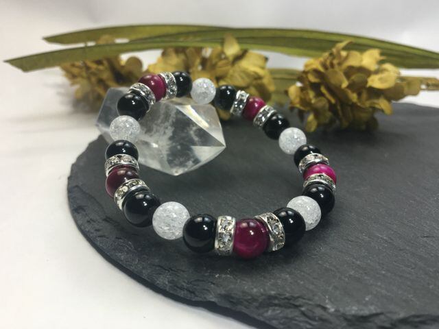 パワーストーン ブレスレット ピンクタイガーアイ&オニキス&クラック水晶 (シルバー)レディース 女性 数珠ブレス 開運 プレゼント ギフト