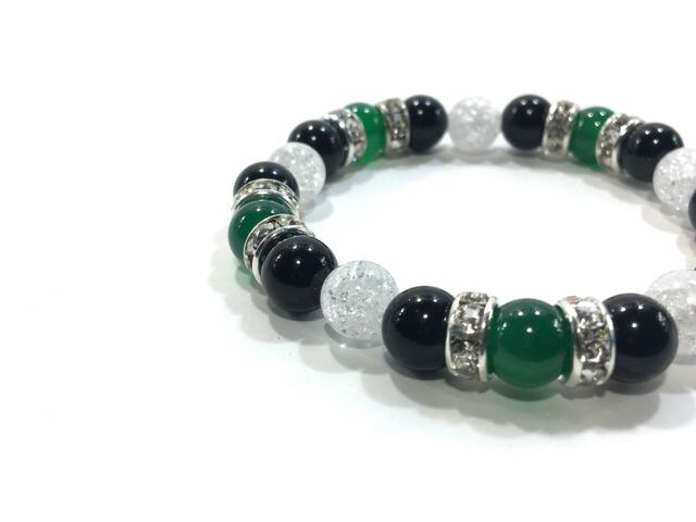 パワーストーン ブレスレット 緑瑪瑙&オニキス&クラック水晶 天然石 (シルバー)レディース 女性 数珠ブレス 開運 プレゼント ギフト