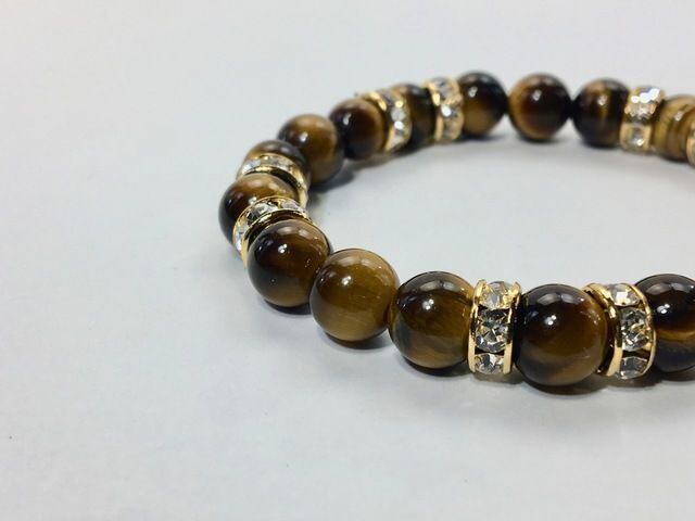 こちらは、8mm玉のタイガーアイを使ったパワーストーンブレスレットです。シンプルなデザインでどんなコーディネートにも合わせやすいデザインに仕上げています。サイズは内周約15cmです。気になる方は是非この機会にどうぞ。