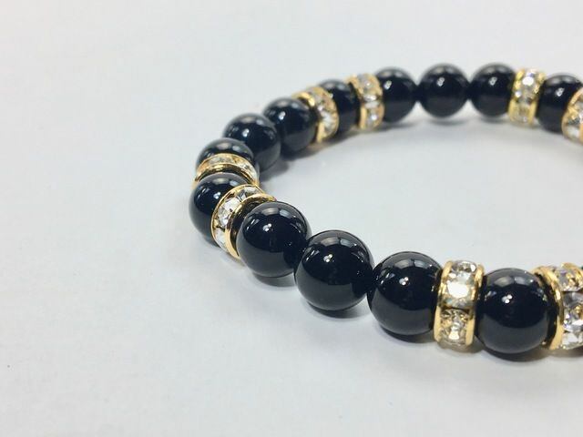パワーストーン ブレスレット オニキス 天然石ブレス (ゴールド)レディース 女性 数珠ブレス 開運 プレゼント ギフト