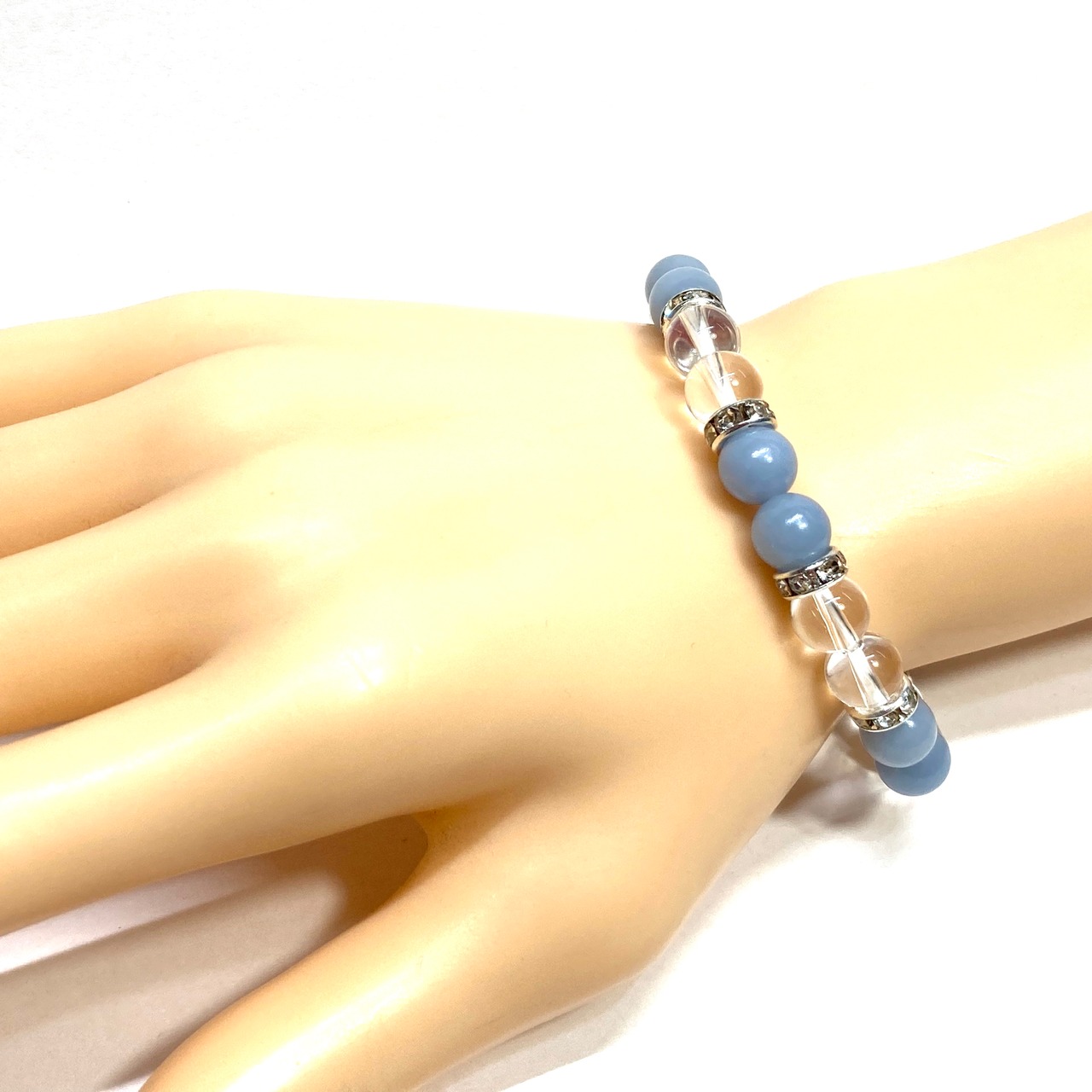 エンジェライト&水晶 パワーストーン ブレスレット 天然石ブレス (シルバー) 8mm レディース 女性 数珠ブレス 開運 プレゼント ギフト