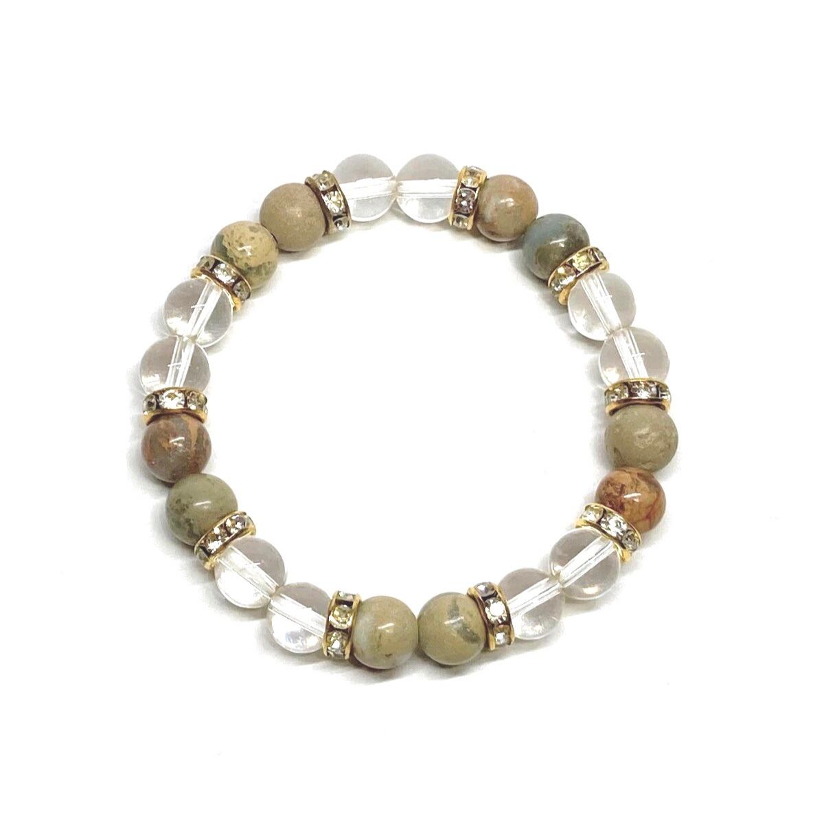 インプレッションストーン&水晶 パワーストーン ブレスレット 天然石ブレス (ゴールド) 8mm レディース 女性 数珠ブレス 開運 プレゼント ギフト