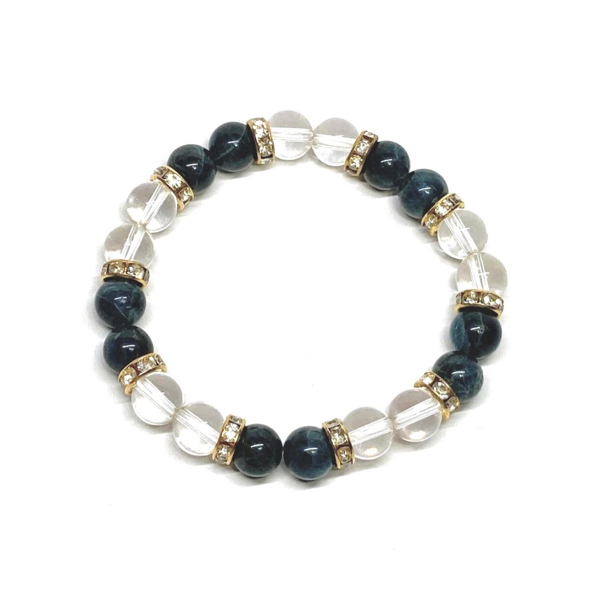 アパタイト&水晶 パワーストーン ブレスレット 天然石ブレス (ゴールド) 8mm レディース 女性 数珠ブレス 開運 プレゼント ギフト