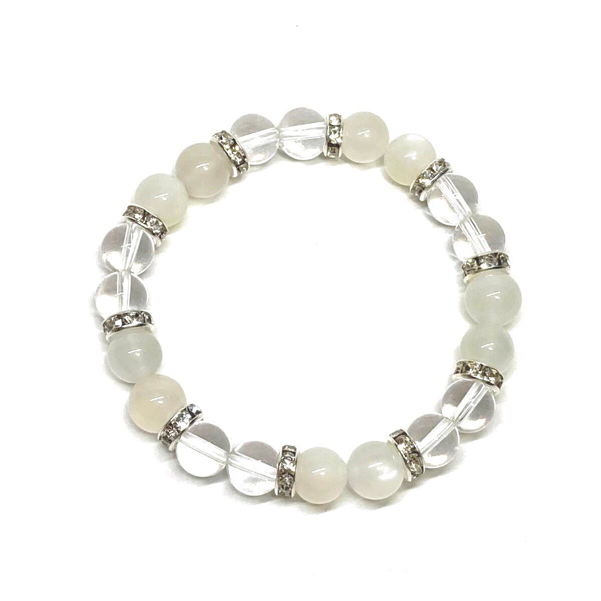 ムーンストーン&水晶 パワーストーン ブレスレット 天然石ブレス (シルバー) 8mm レディース 女性 数珠ブレス 開運 プレゼント ギフト