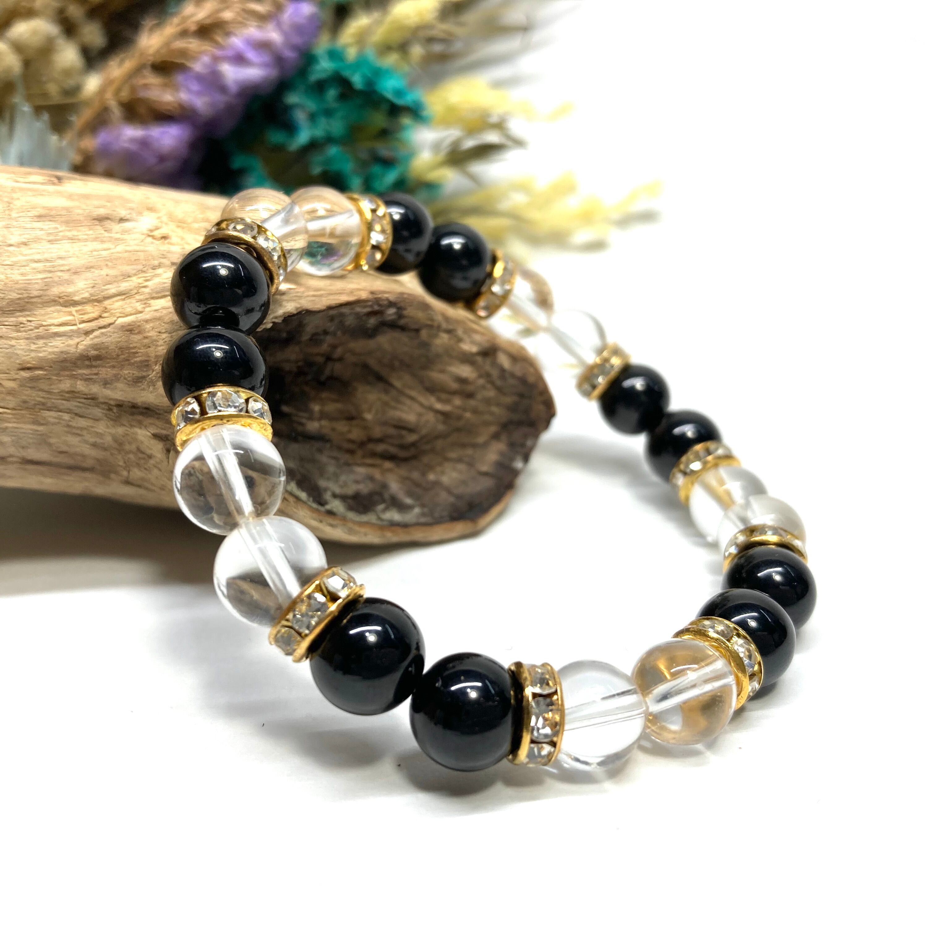 モリオン&水晶 パワーストーン ブレスレット 天然石ブレス (ゴールド) 8mm レディース 女性 数珠ブレス 開運 プレゼント ギフト