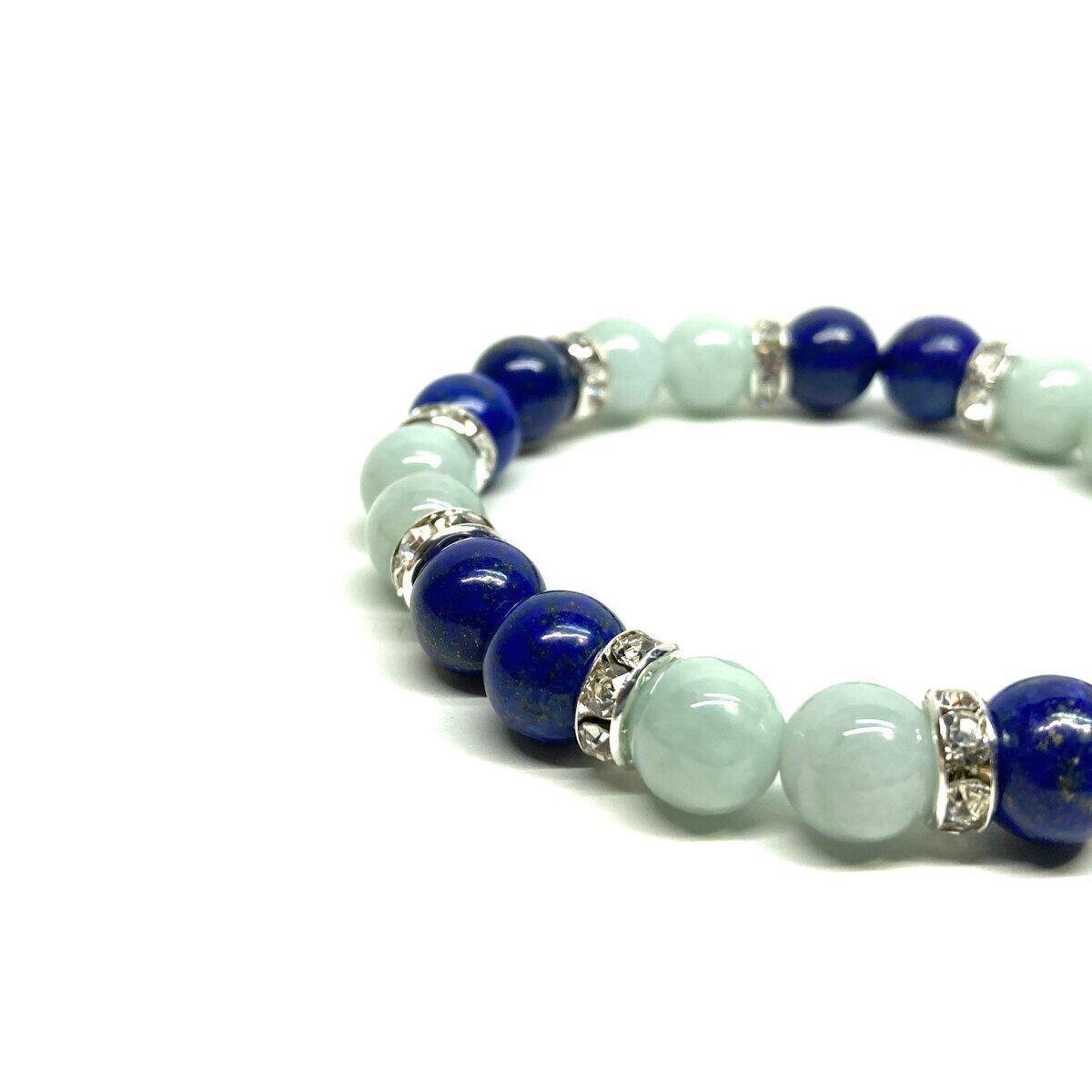 ラピスラズリ&ビルマ翡翠 パワーストーン ブレスレット 天然石 (シルバー) 8mm レディース 女性 数珠ブレス 開運 プレゼント ギフト