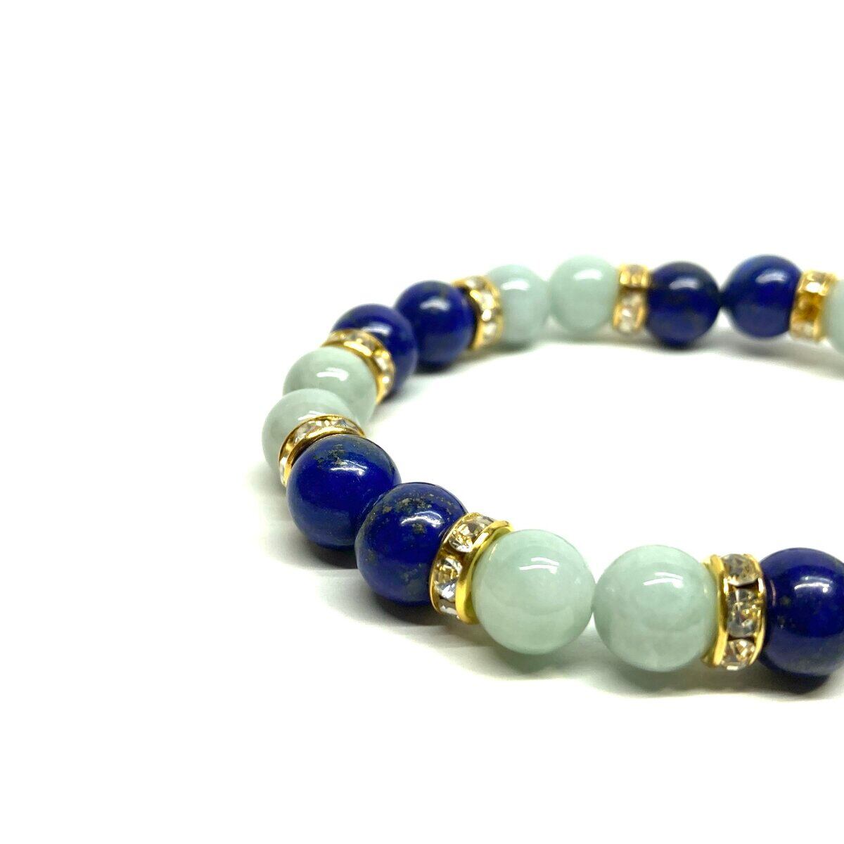 ラピスラズリ&ビルマ翡翠 パワーストーン ブレスレット 天然石 (ゴールド) 8mm レディース 女性 数珠ブレス 開運 プレゼント ギフト