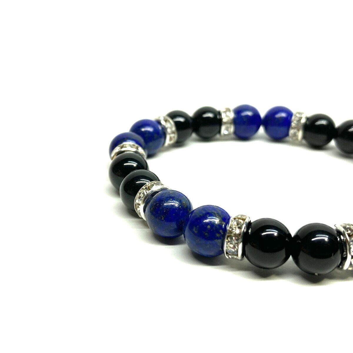 ラピスラズリ&モリオン パワーストーン ブレスレット 天然石 (シルバー) 8mm レディース 女性 数珠ブレス 開運 プレゼント ギフト