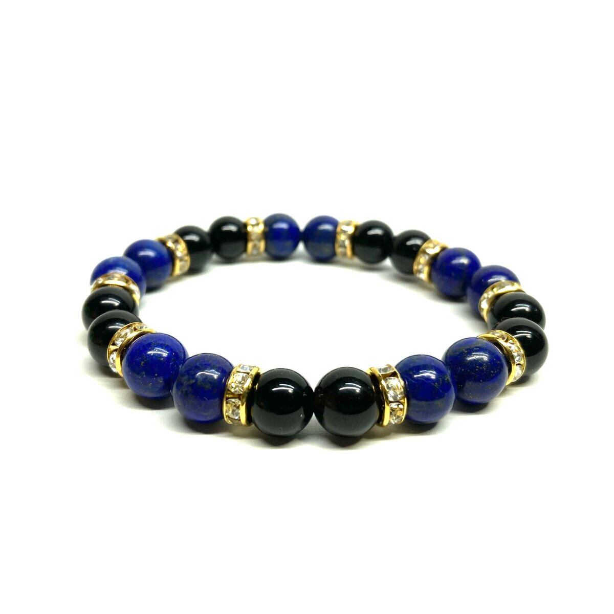 ラピスラズリ&モリオン パワーストーン ブレスレット 天然石 (ゴールド) 8mm レディース 女性 数珠ブレス 開運 プレゼント ギフト