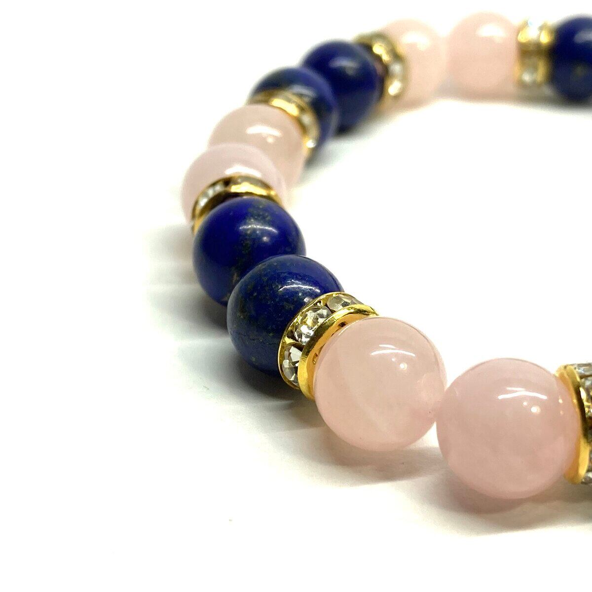ラピスラズリ&ローズクォーツ パワーストーン ブレスレット 天然石 (ゴールド) 8mm レディース 女性 数珠ブレス 開運 プレゼント ギフト