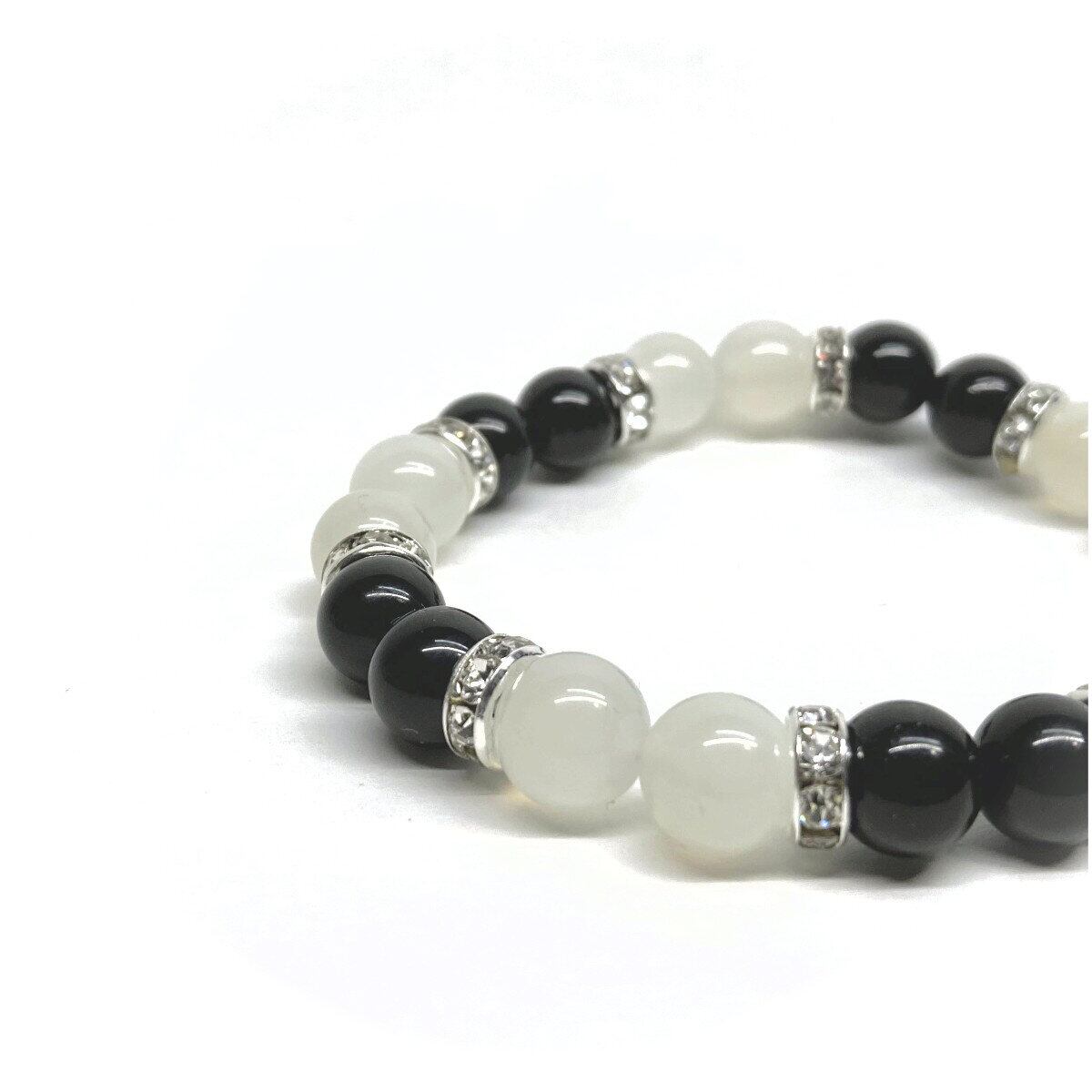 モリオン&ムーンストーン パワーストーン ブレスレット 天然石 (シルバー) 8mm レディース 女性 数珠ブレス 開運 プレゼント ギフト