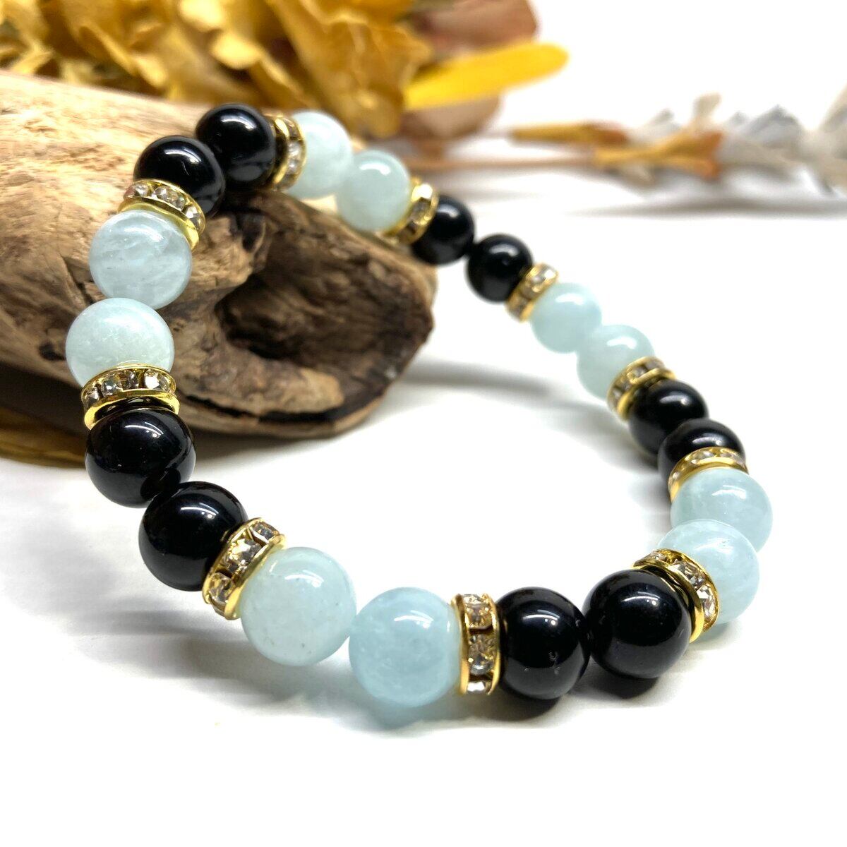 モリオン&アクアマリン パワーストーン ブレスレット 天然石 (ゴールド) 8mm レディース 女性 数珠ブレス 開運 プレゼント ギフト