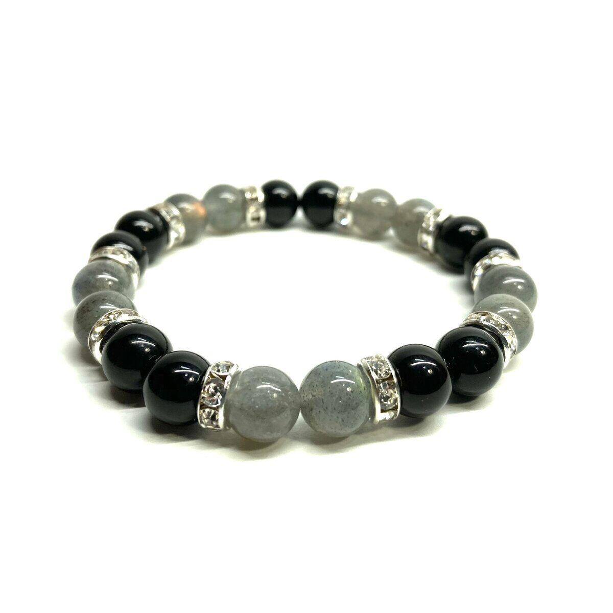 モリオン&ラブラドライト パワーストーン ブレスレット 天然石 (シルバー) 8mm レディース 女性 数珠ブレス 開運 プレゼント ギフト