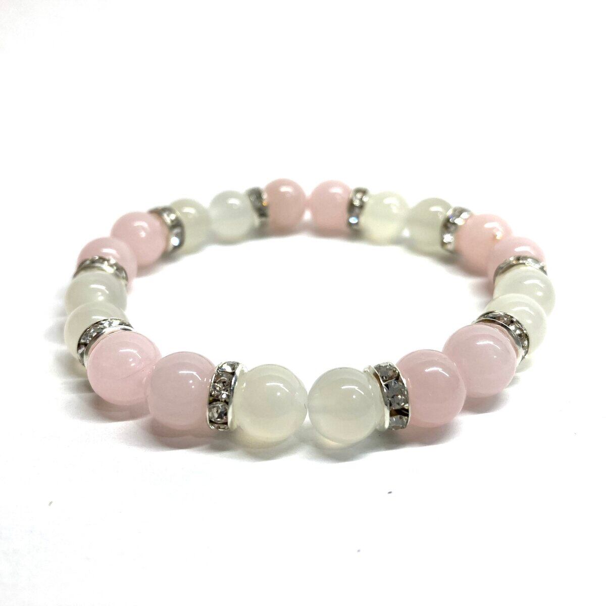 ムーンストーン&ローズクォーツ パワーストーン ブレスレット 天然石 (シルバー) 8mm レディース 女性 数珠ブレス 開運 プレゼント ギフト