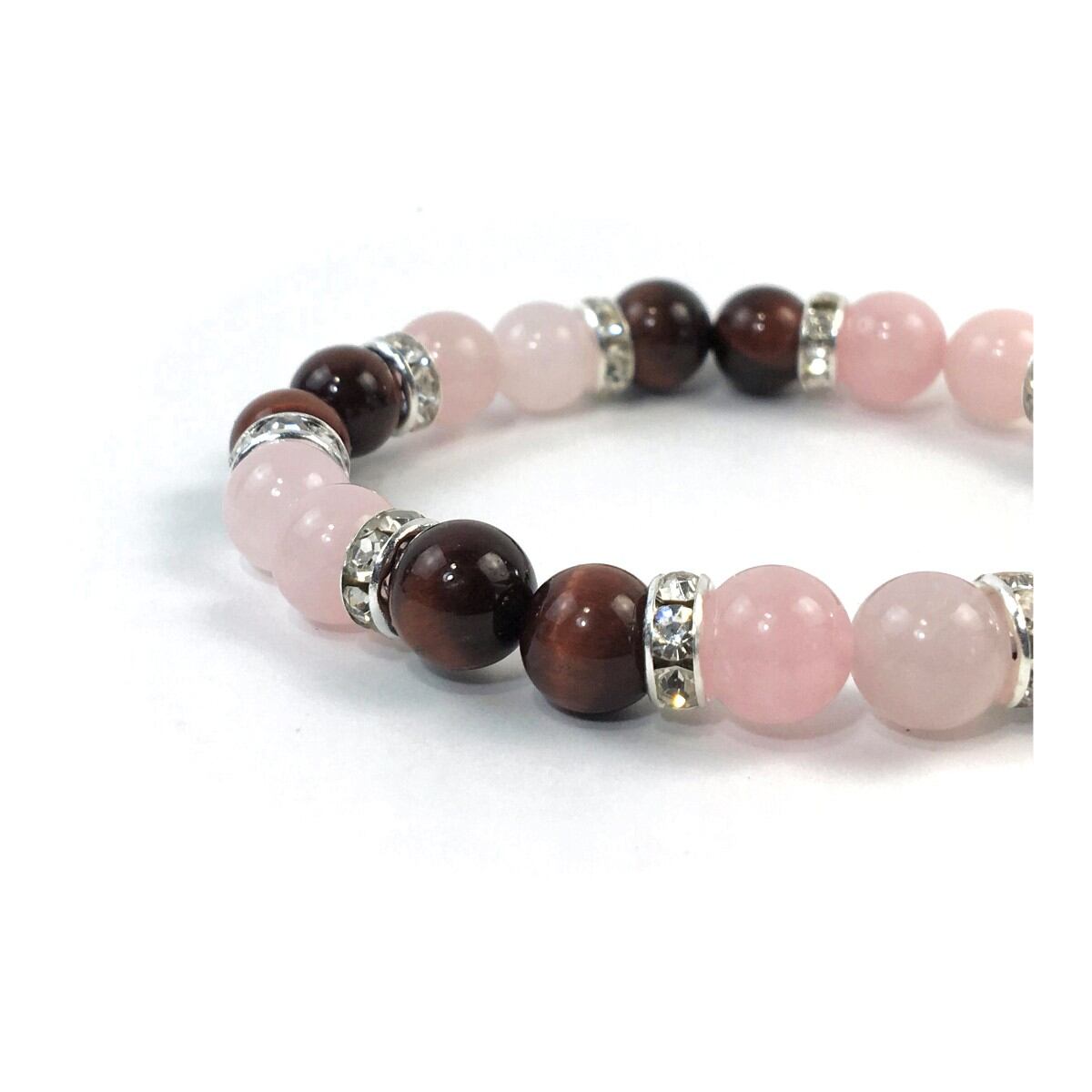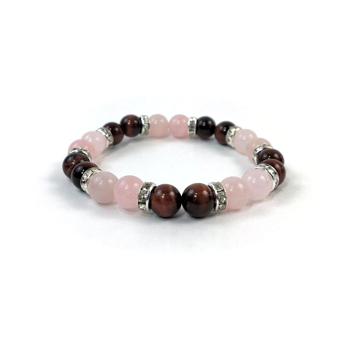 ローズクォーツ&レッドタイガーアイ パワーストーン ブレスレット 天然石 8mm(シルバー)レディース 女性 数珠ブレス 開運 プレゼント ギフト