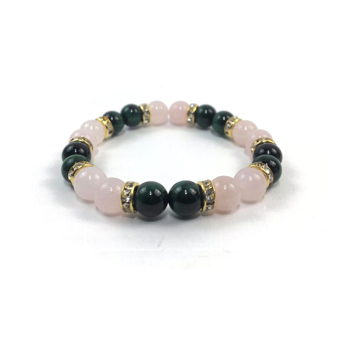 ローズクォーツ&グリーンタイガーアイ パワーストーン ブレスレット 天然石 8mm(ゴールド)レディース 女性 数珠ブレス 開運 プレゼント ギフト