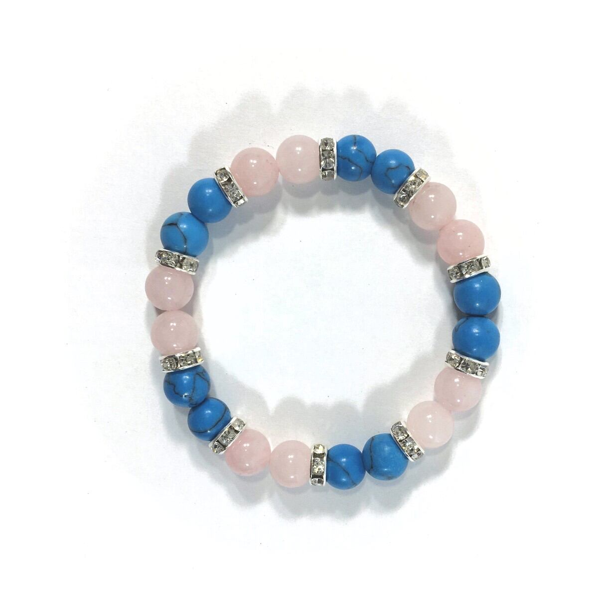 ローズクォーツ&ターコイズ パワーストーン ブレスレット 8mm(シルバー)レディース 女性 数珠ブレス 開運 プレゼント ギフト #1