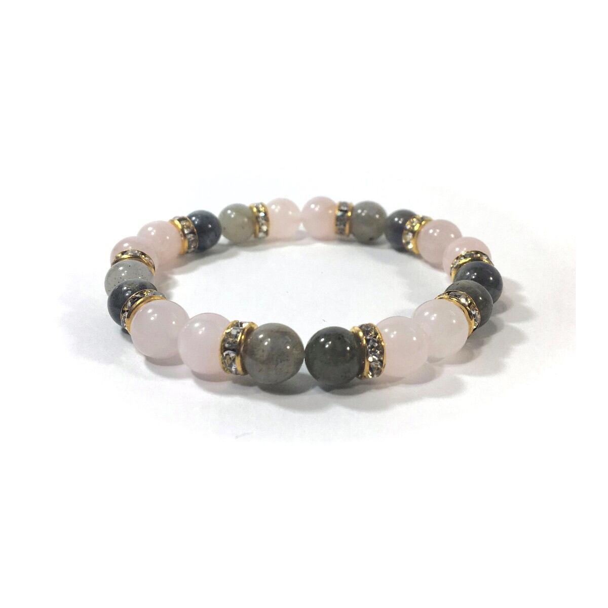 ローズクォーツ&ラブラドライト パワーストーン ブレスレット 天然石 8mm(ゴールド)レディース 女性 数珠ブレス 開運 プレゼント ギフト