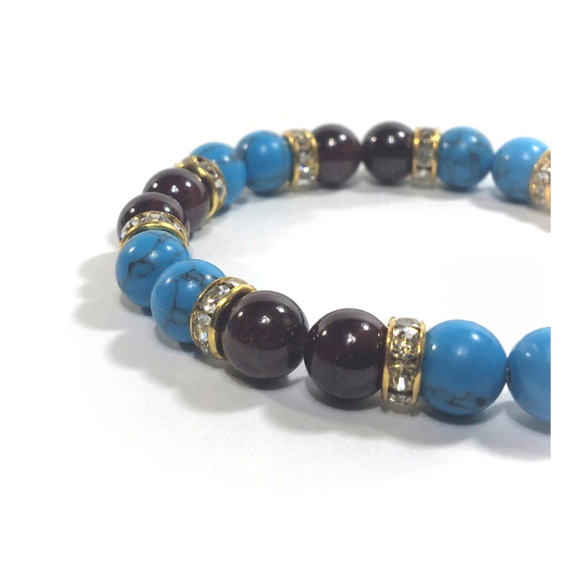 ターコイズ&ガーネット パワーストーン ブレスレット 天然石ブレス 8mm(ゴールド)レディース 女性 数珠ブレス 開運 プレゼント ギフト
